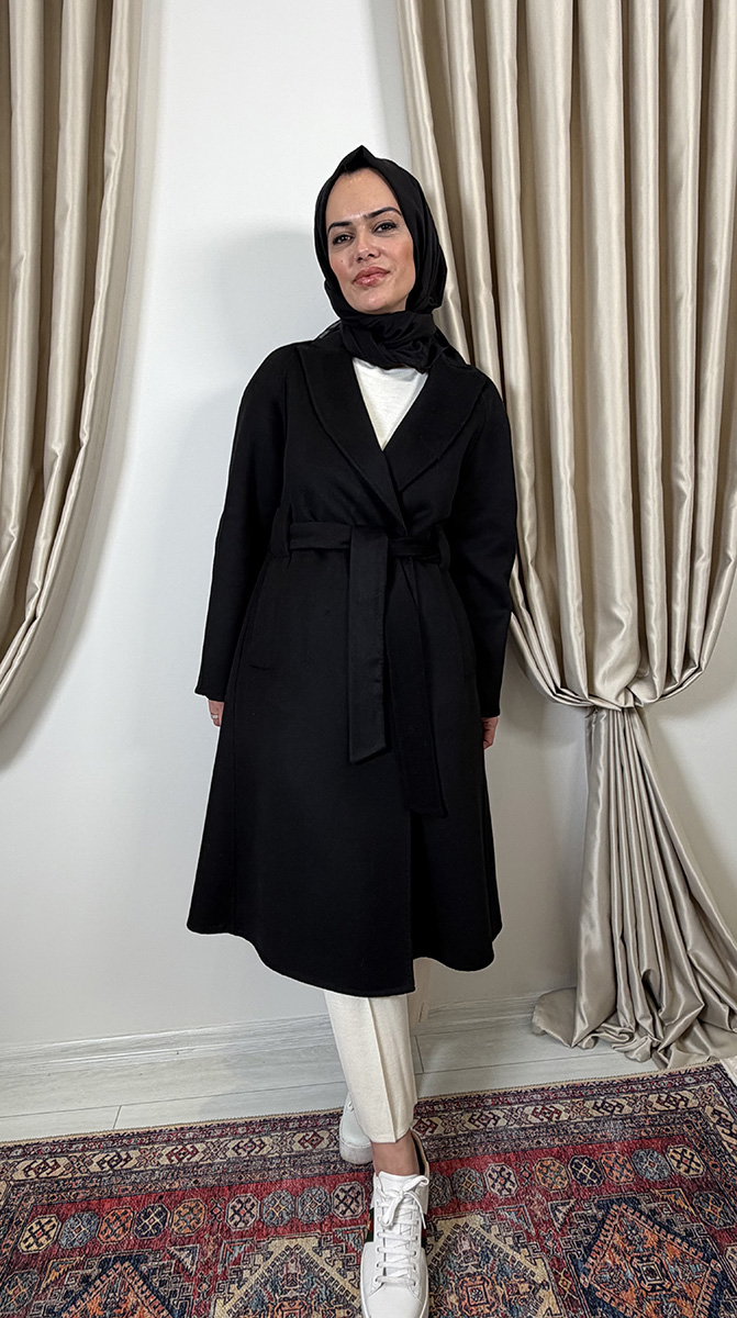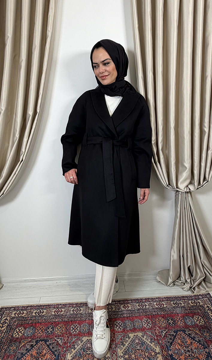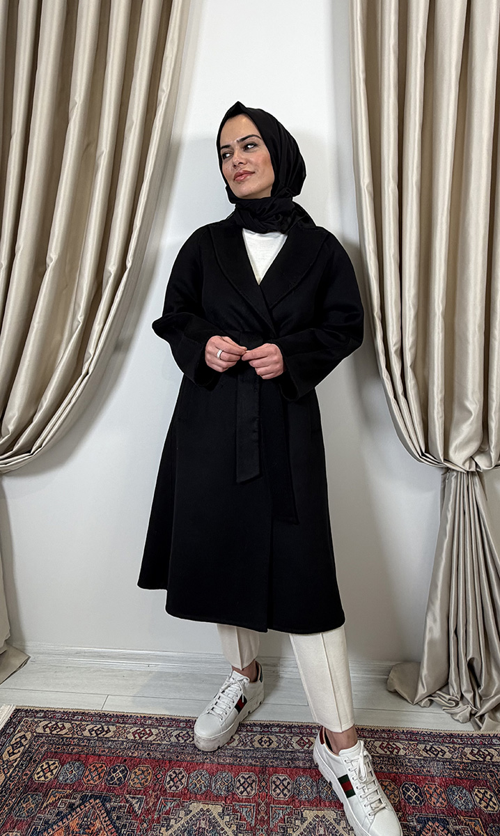 Qupra Kuşaklı Kaşmir Kaban SİYAH