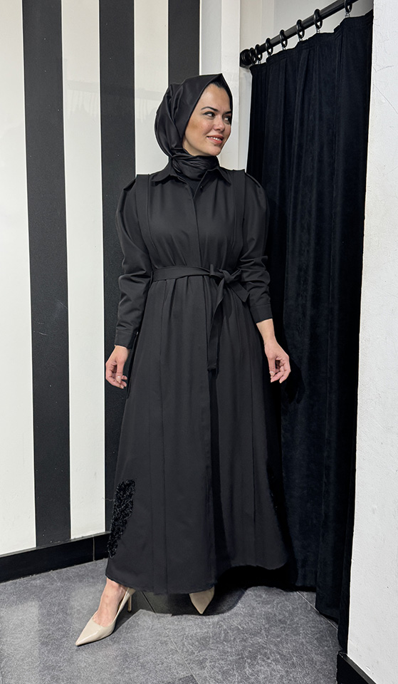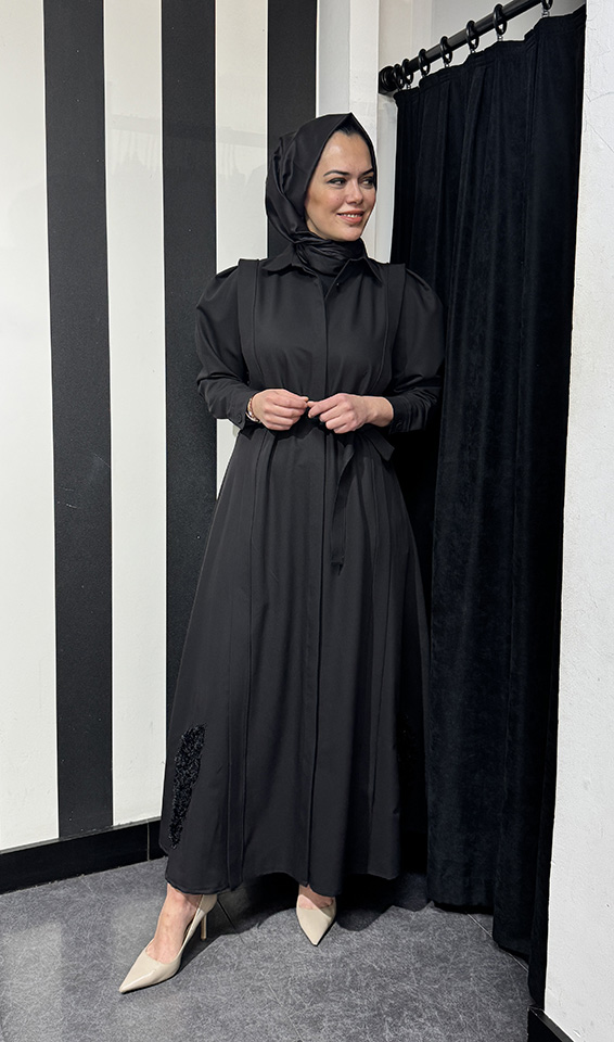 Qupra Nakış Detaylı Elbise SİYAH