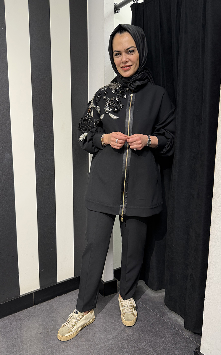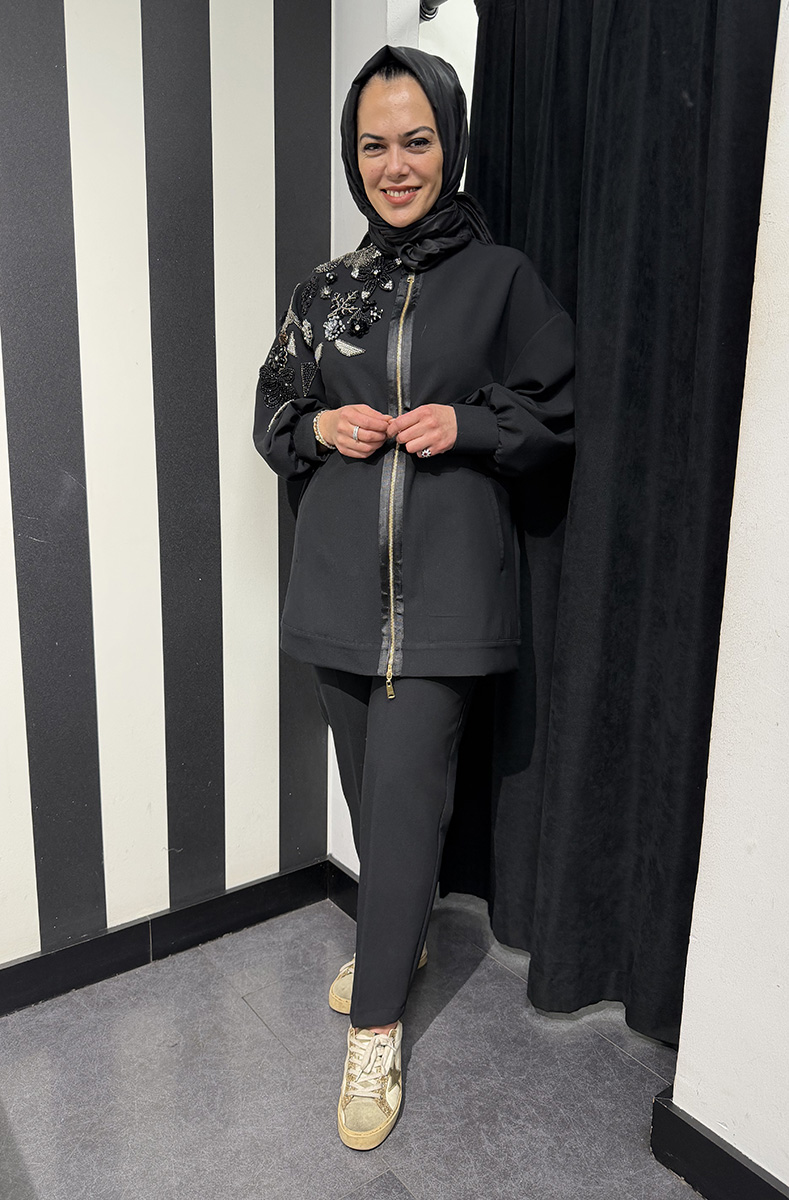 Qupra Omuzu Aksesuarlı Takım SİYAH