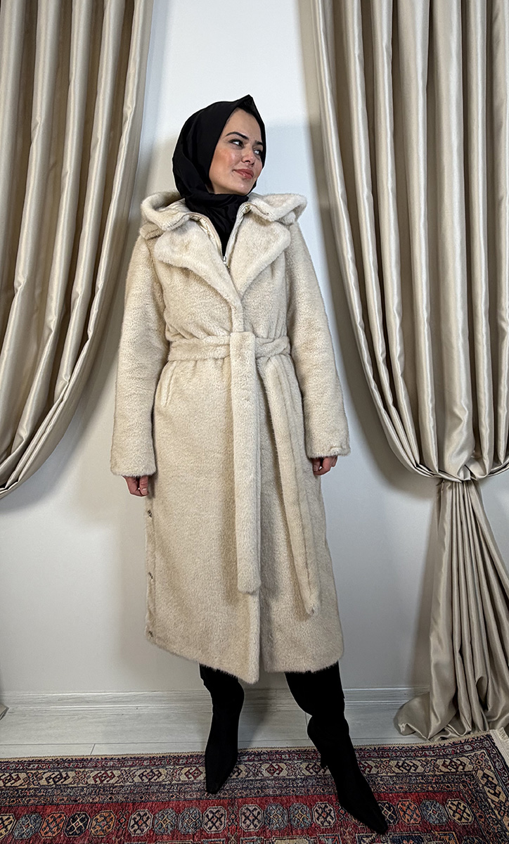 StudioNish Bella Yakası Kürklü Fox Kaban BEJ