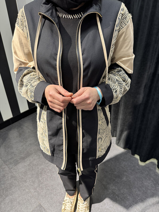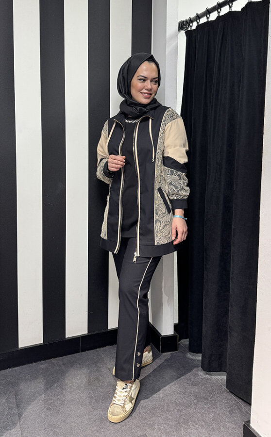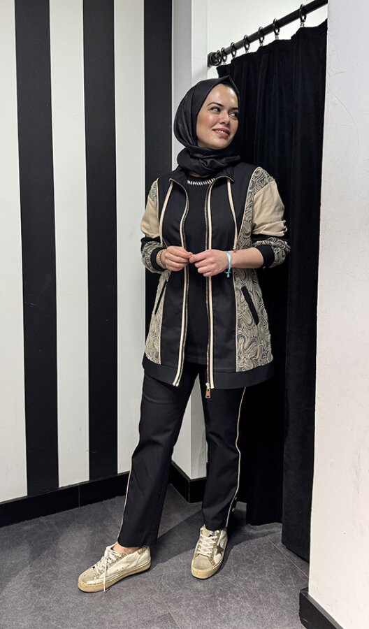 SBL Design Tül Ve Pul Detaylı Önü Fermuarlı Pantolon Takım SİYAH