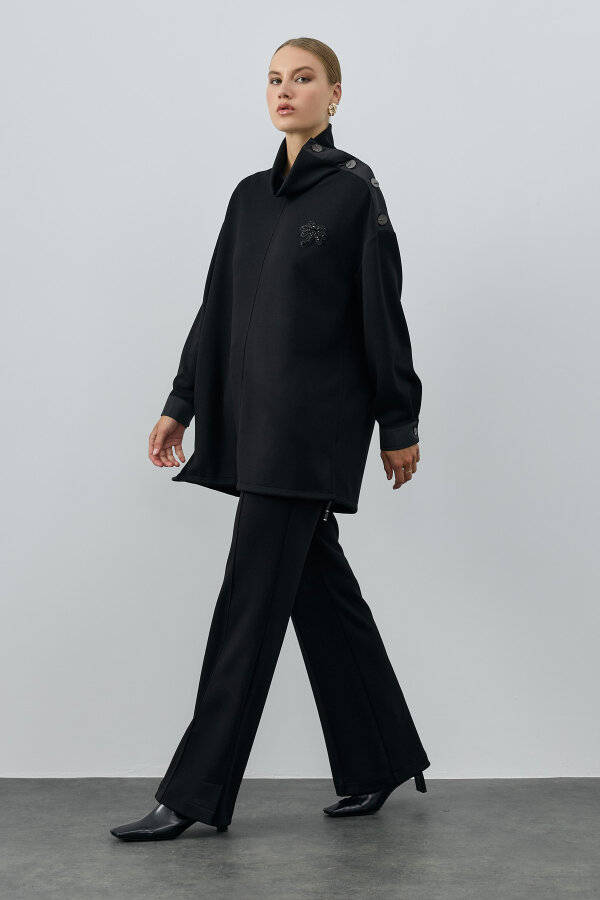 SBL Design Yakası Düğme Detaylı Pantolon Takım SİYAH