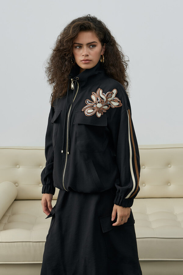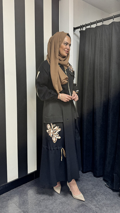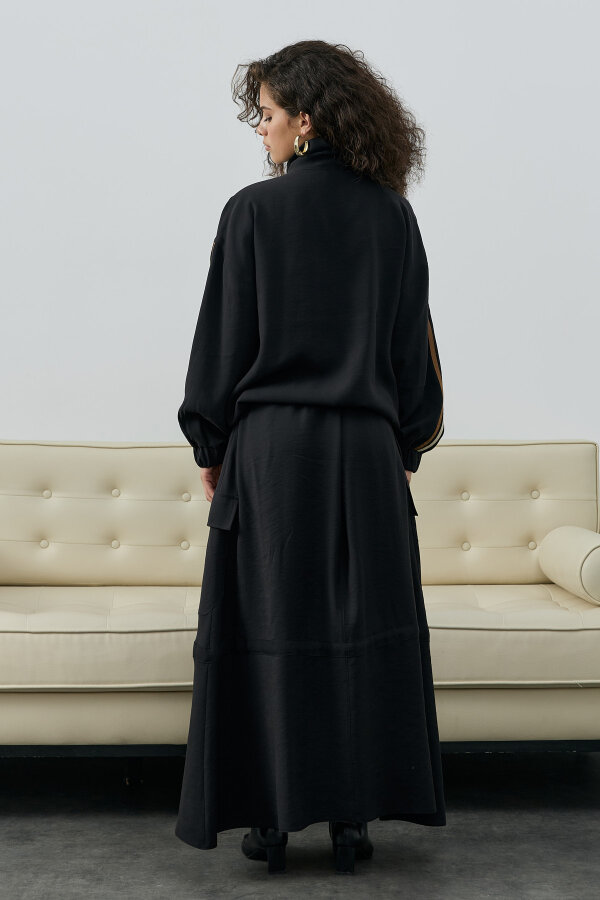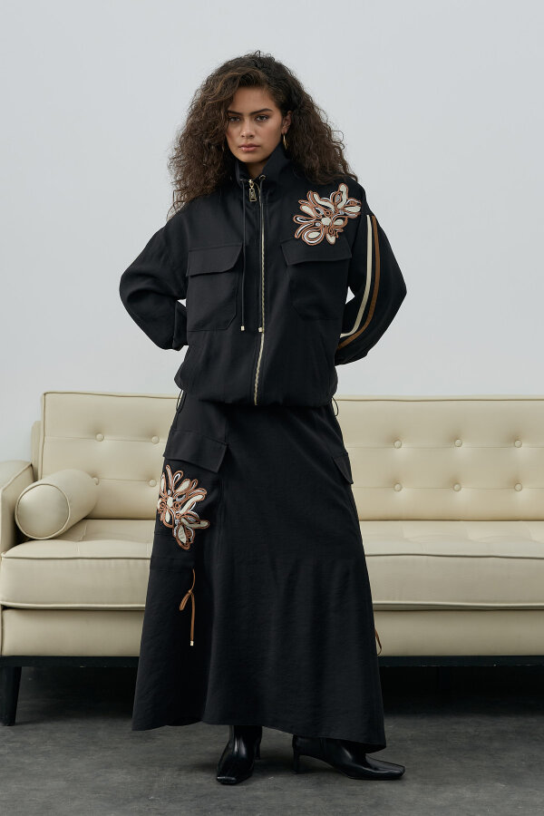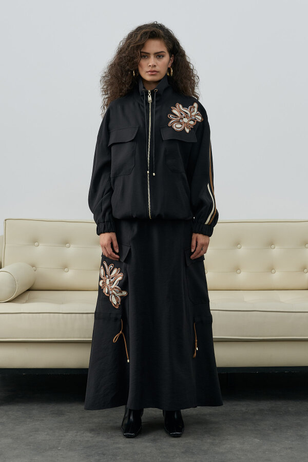 SBL Desing Çiçek Detaylı Etekli Takım SİYAH