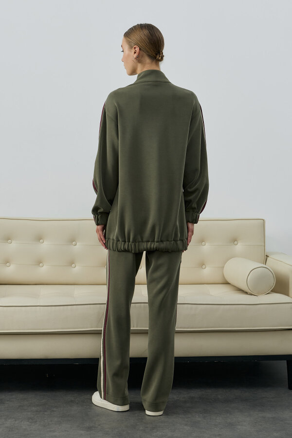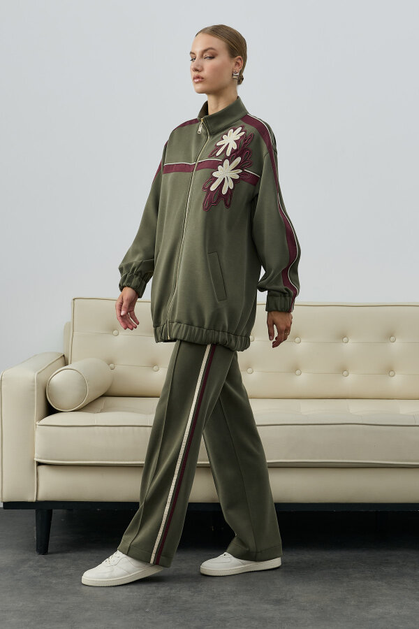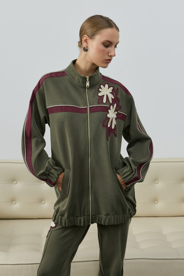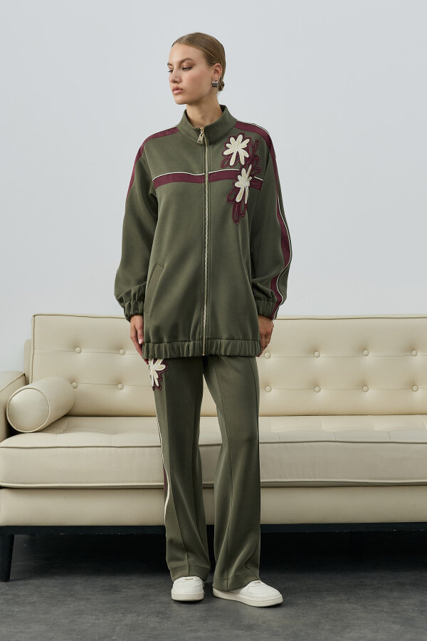 SBL Desing Fermuarlı Çiçek Detaylı Pantolonlu Takım HAKİ