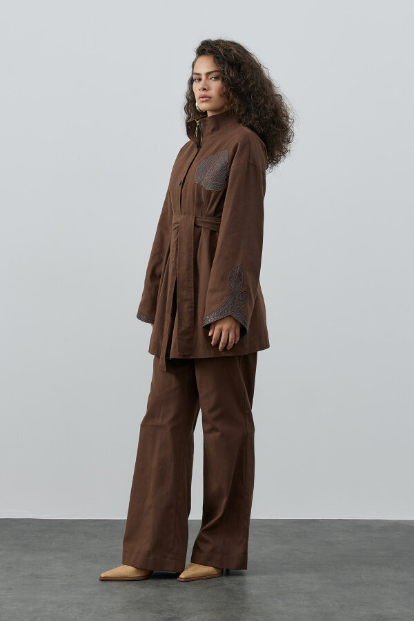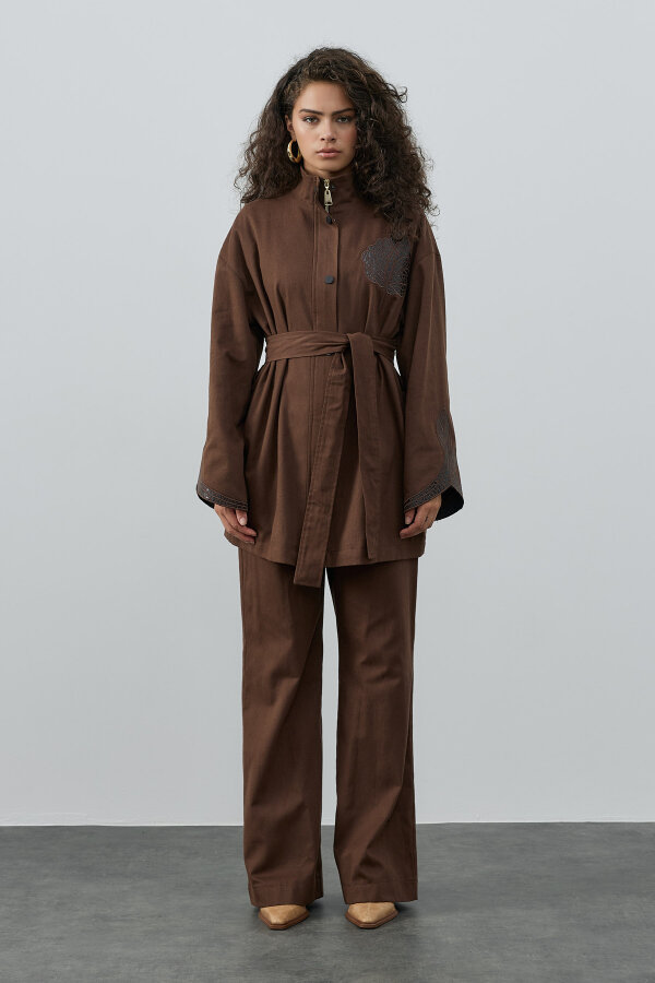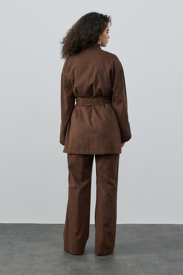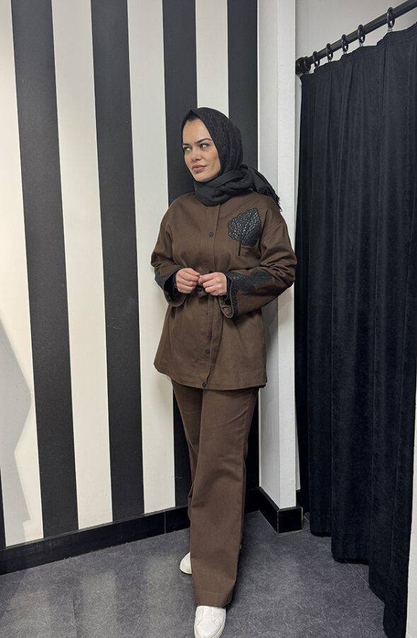 MissWhence Kendinden Desenli Şalvarlı Takım KAHVE