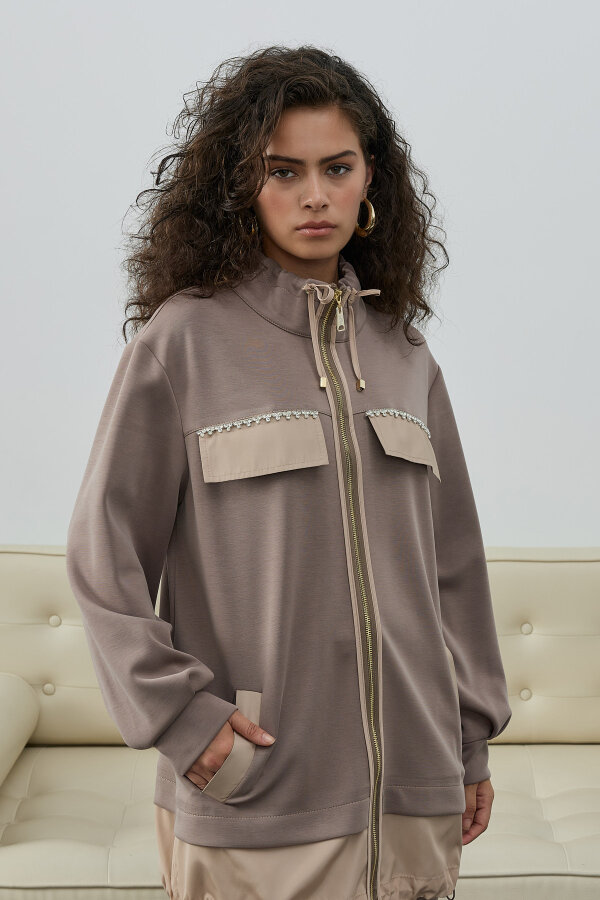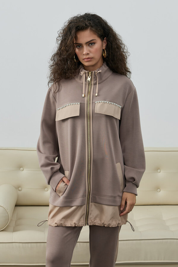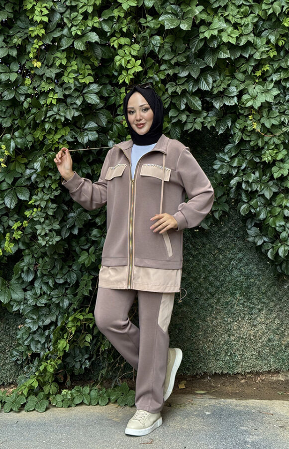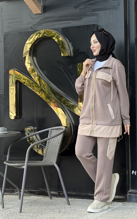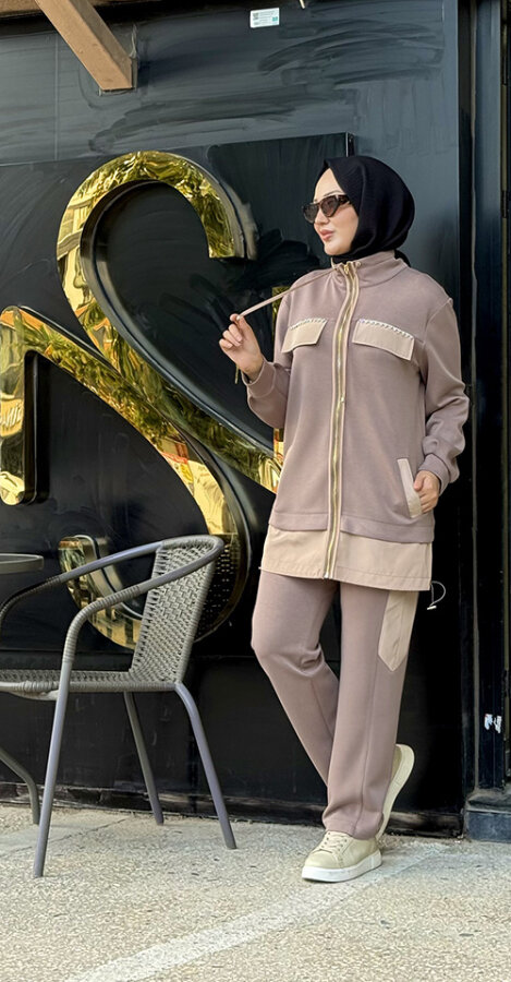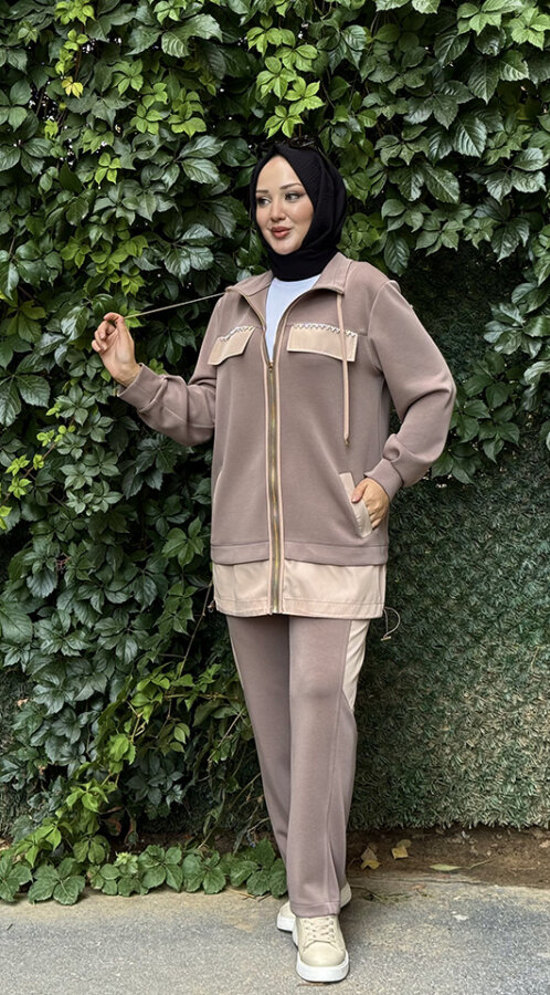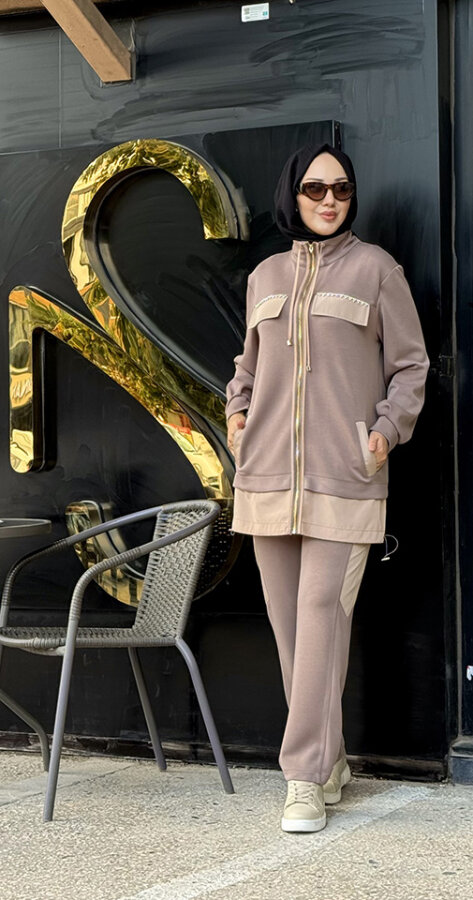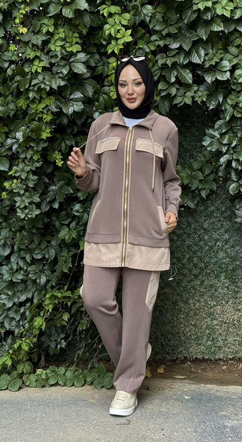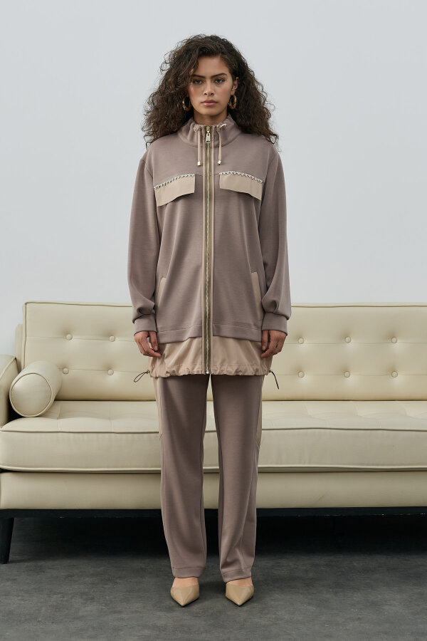 SBL Desing Önü Taşlı Pantolonlu Takım VİZON