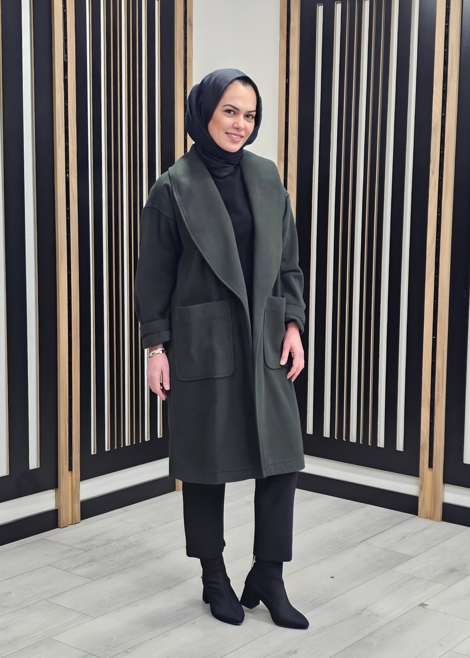 Si Design Şal Yaka Kaşe Kaban HAKİ