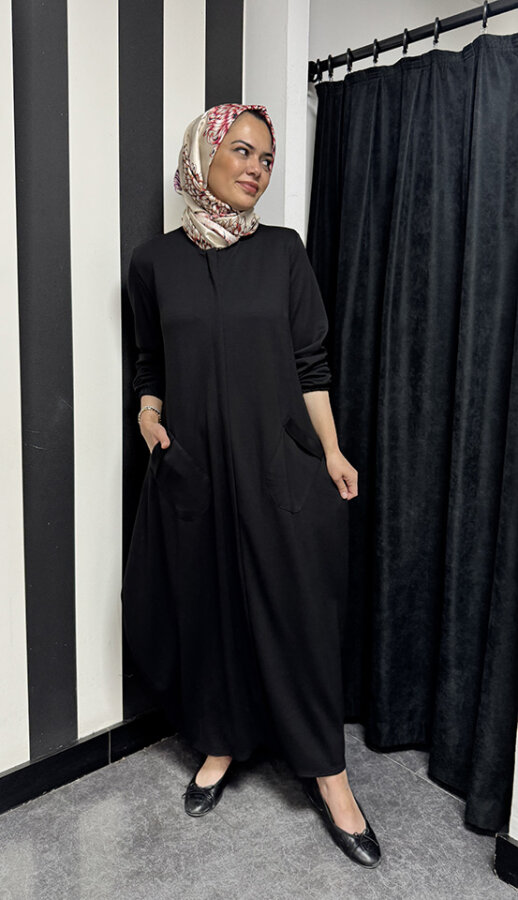 Miss Dalida Önden Çıtçıtlı ve Büzgülü Kap BLACK