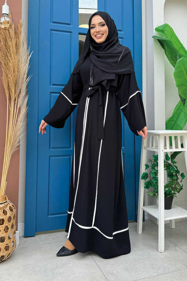 StudioNish Çizgi Detaylı Ferace SİYAH