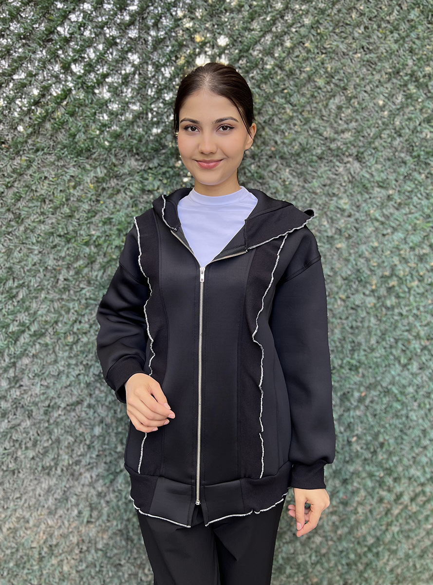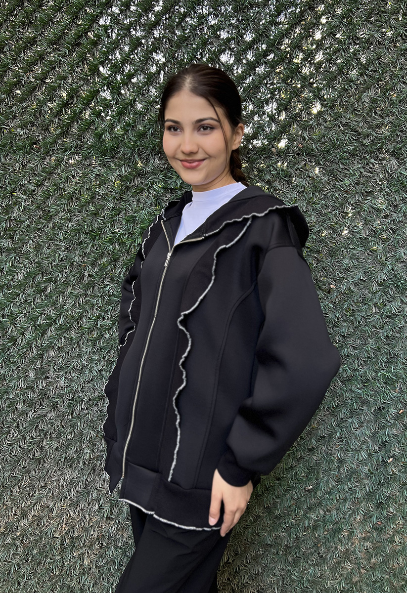 StudioNish Fırfır Detaylı Scuba Ceket SİYAH