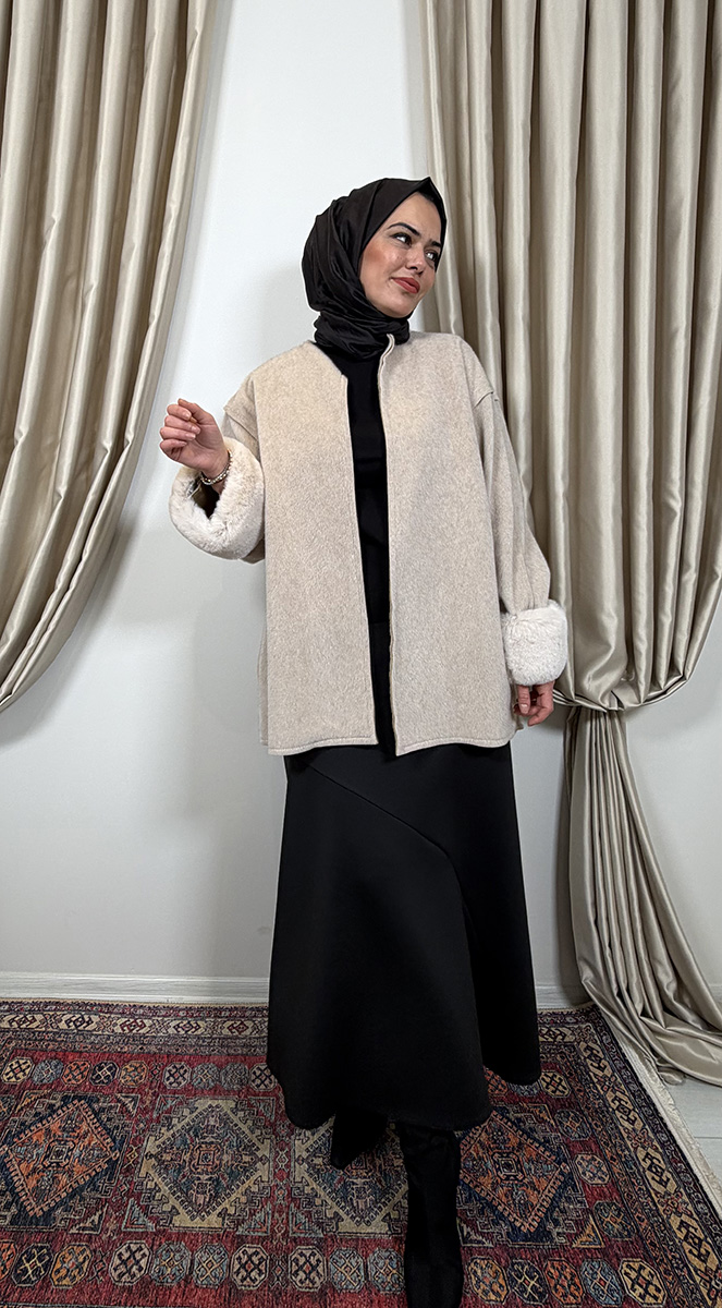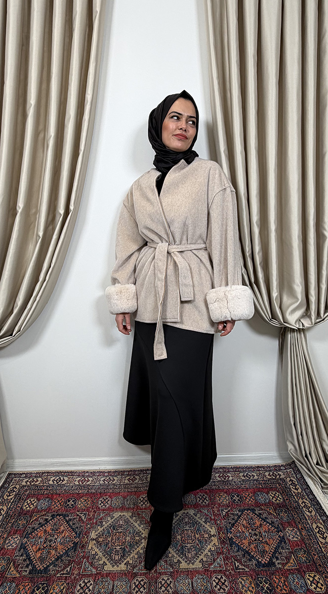 StudioNish Lora Kolu Kürklü Fox Kaban BEJ