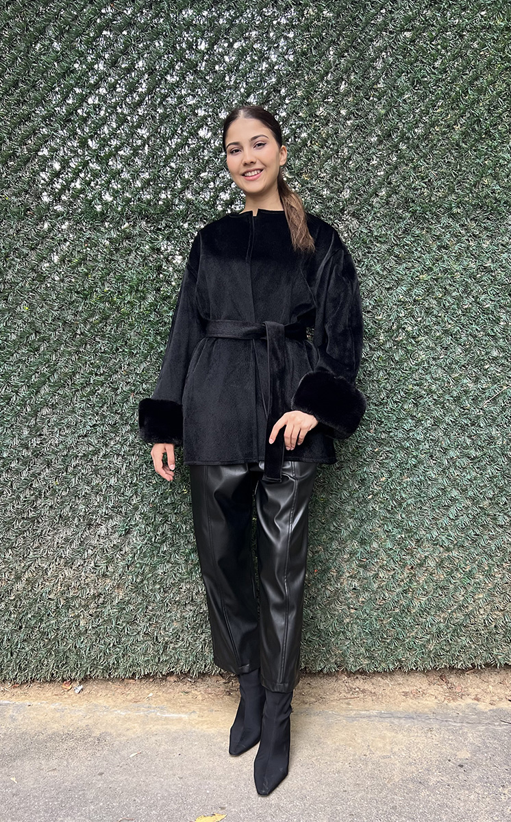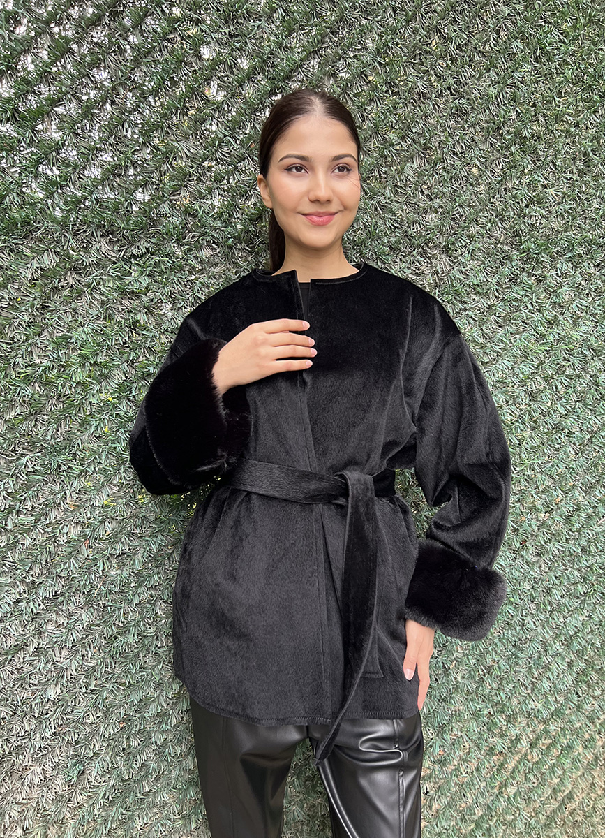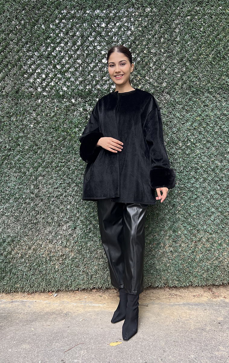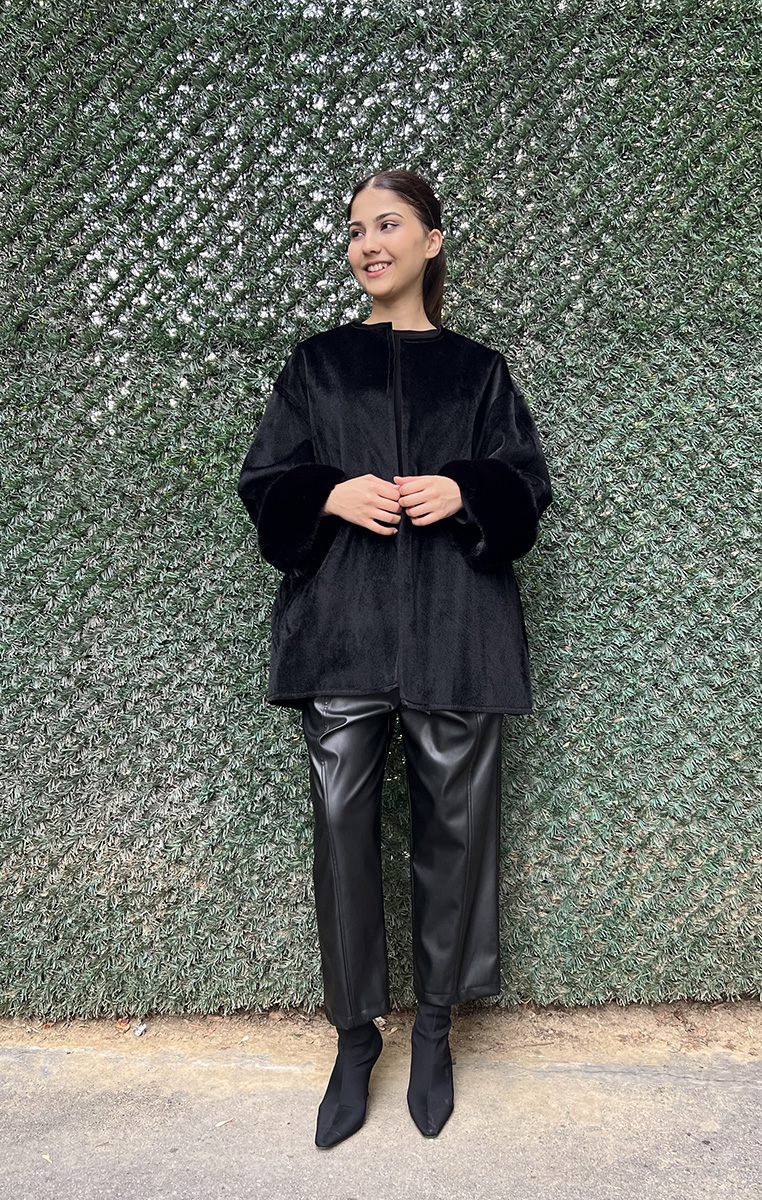StudioNish Lora Kolu Kürklü Fox Kaban SİYAH