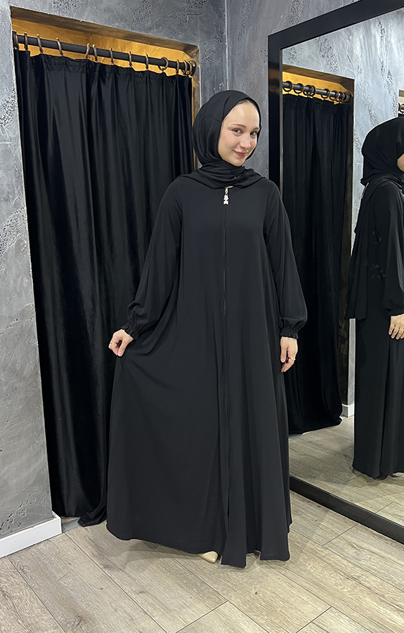 Ceremony Kolu Ve Ön Bedeni Kafes Detaylı Fermuarlı Pasion Ferace Amber