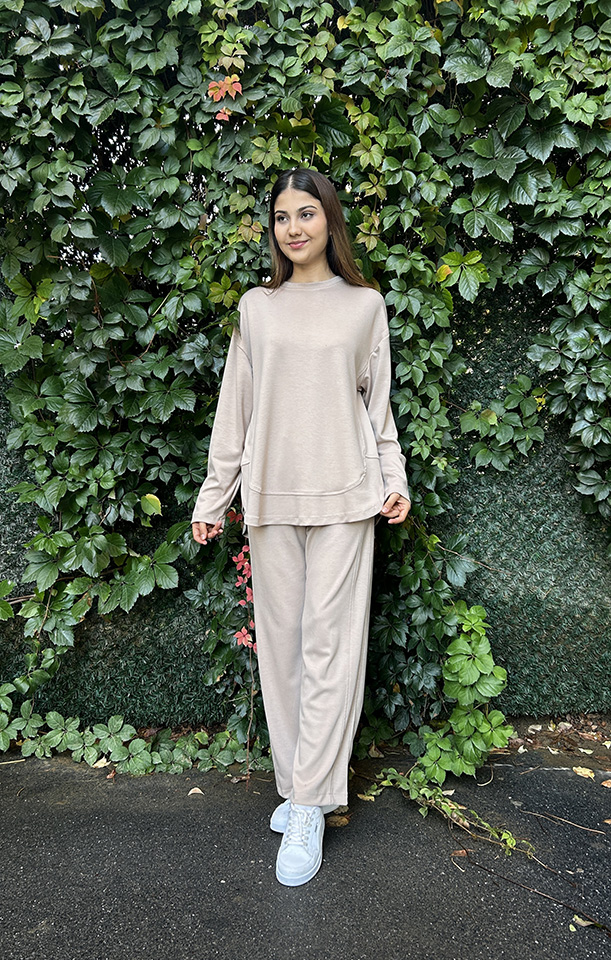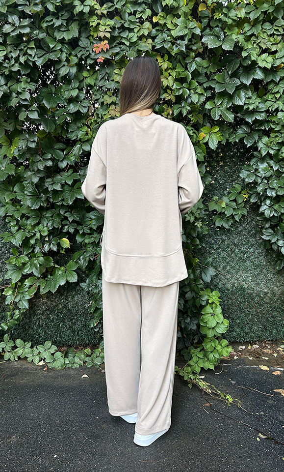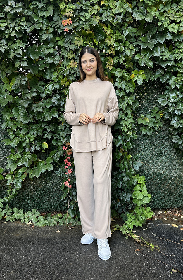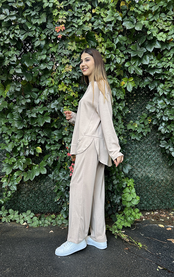MissWhence Kendinden Desenli Şalvarlı Takım KAHVE