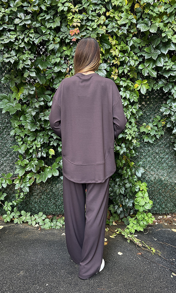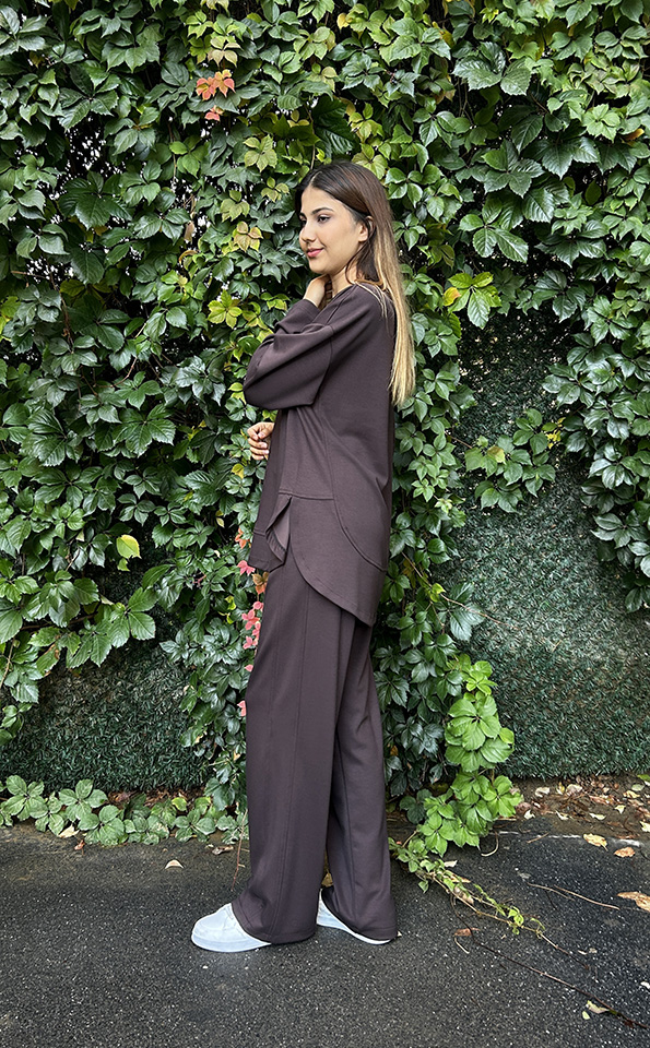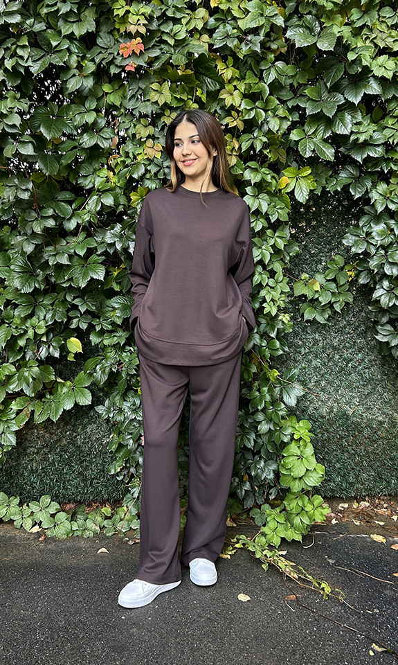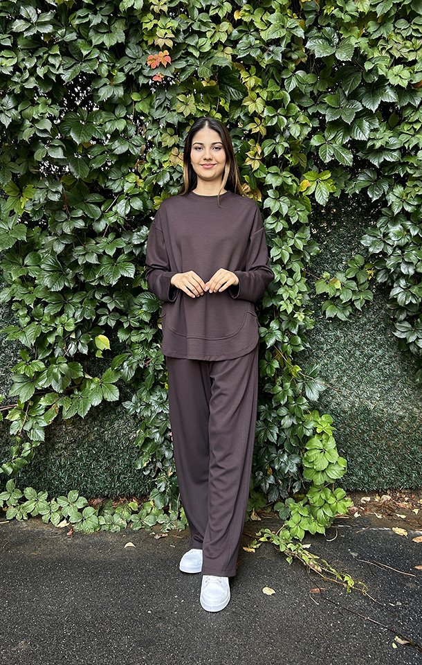 MissWhence Kendinden Desenli Şalvarlı Takım KAHVE