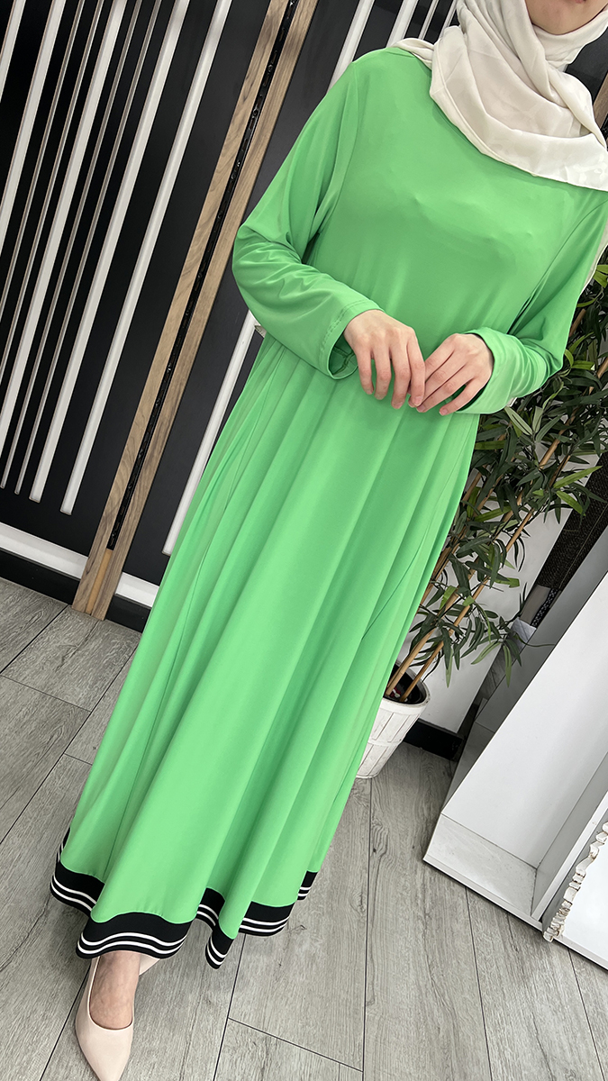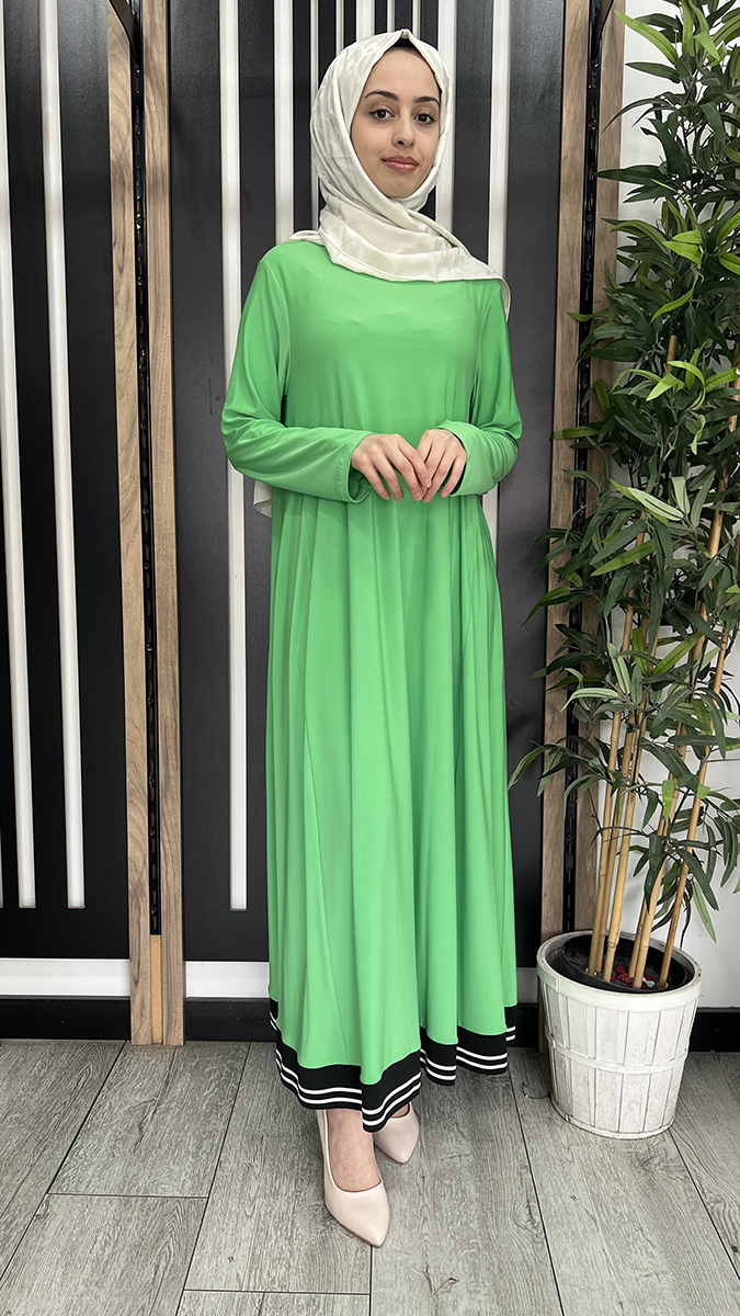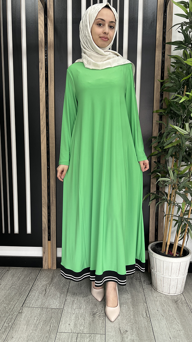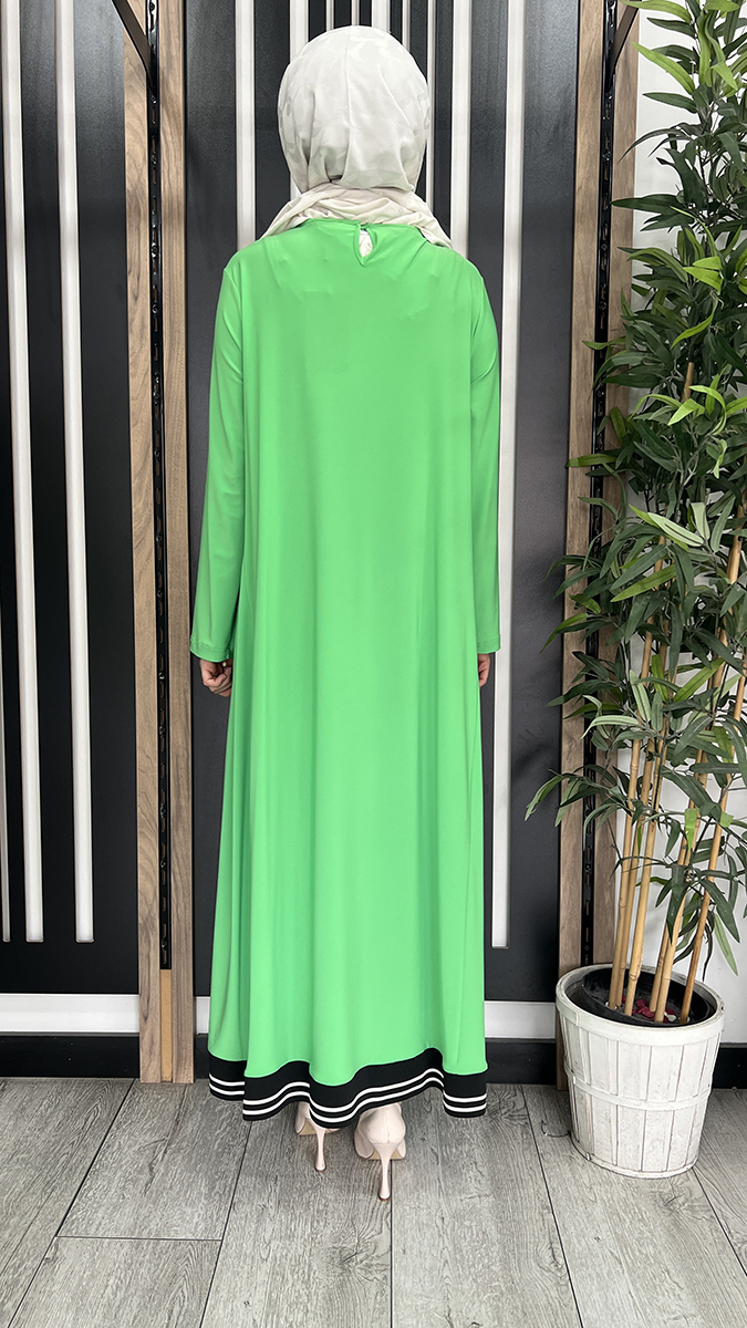 Tdee Etek Ucu Ribanalı Kollu Elbise YEŞİL