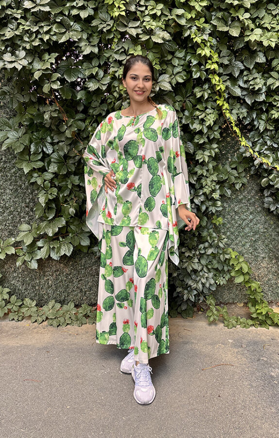 Qupra Önü Asimetrik Taşlı Pantolonlu Takım BEJ