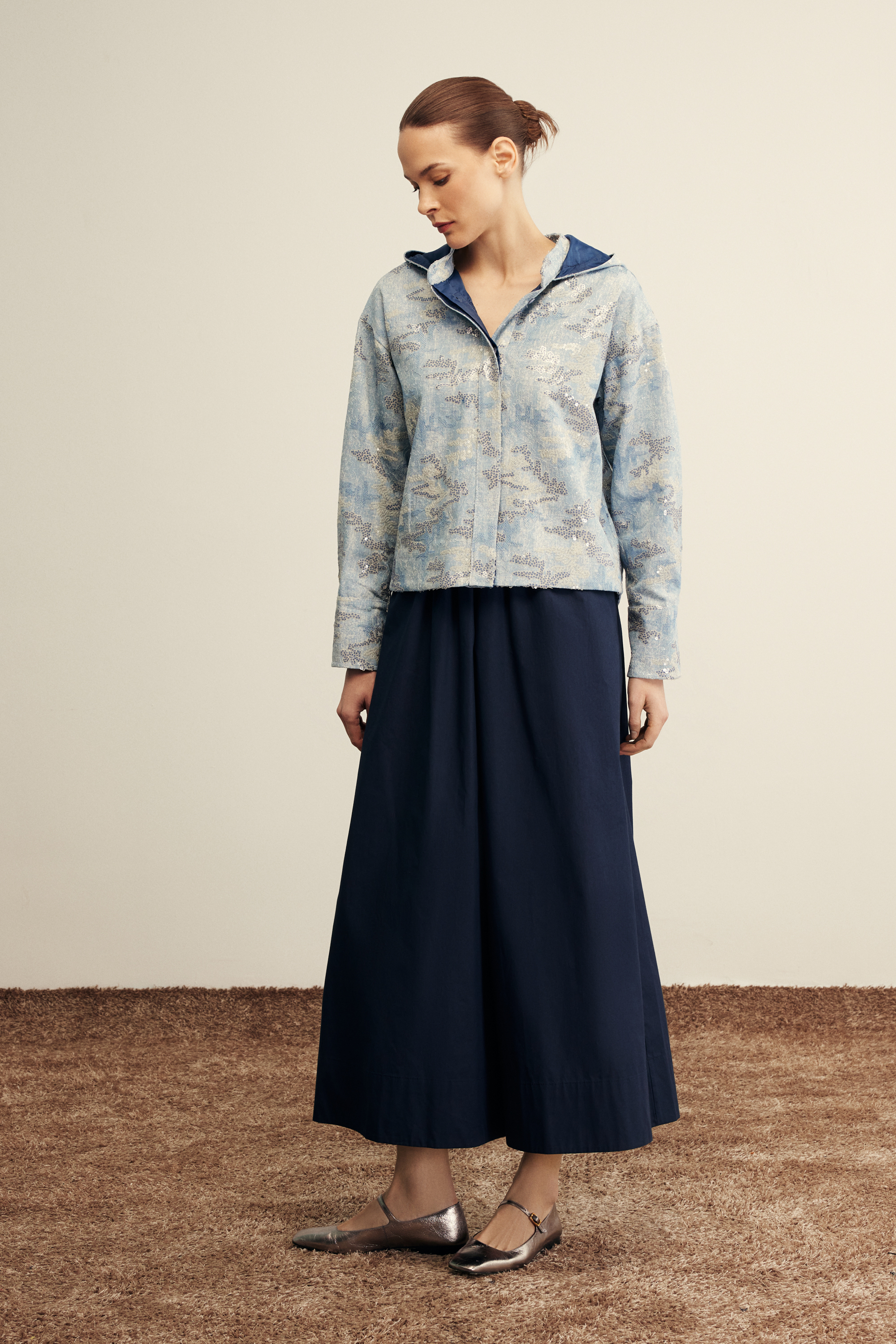 Miss Dalida Gömlek Yaka Denim Detaylı Uzun Ceket İNDİGO