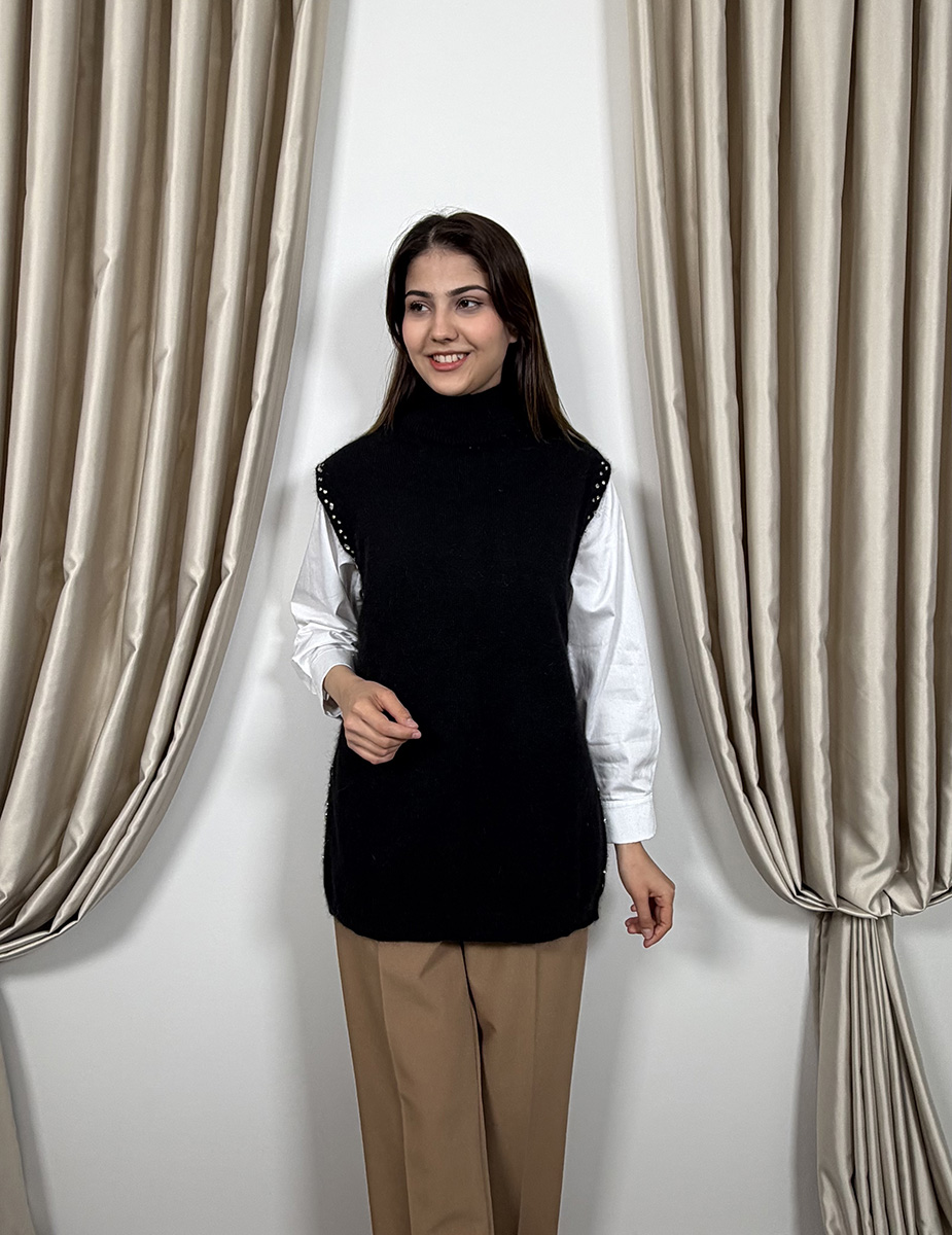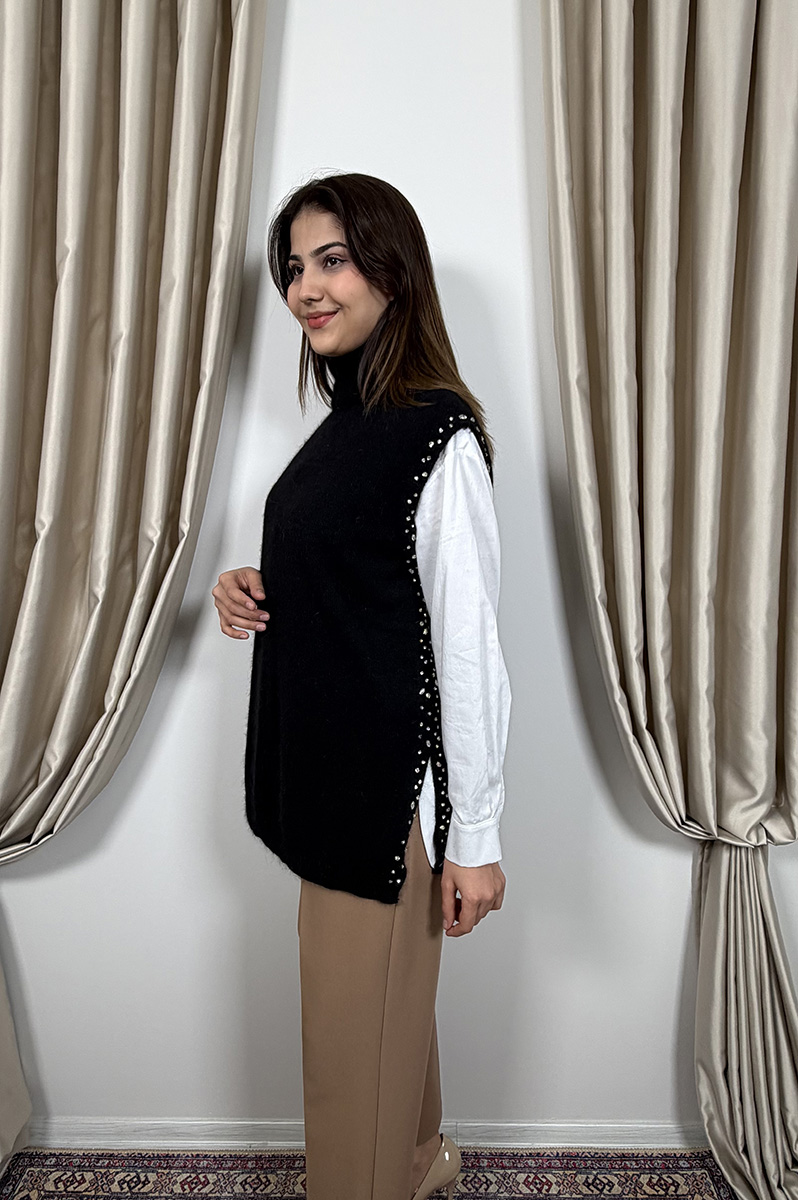 Miss Dalida Önü Çıtçıtlı Yelek BLACK
