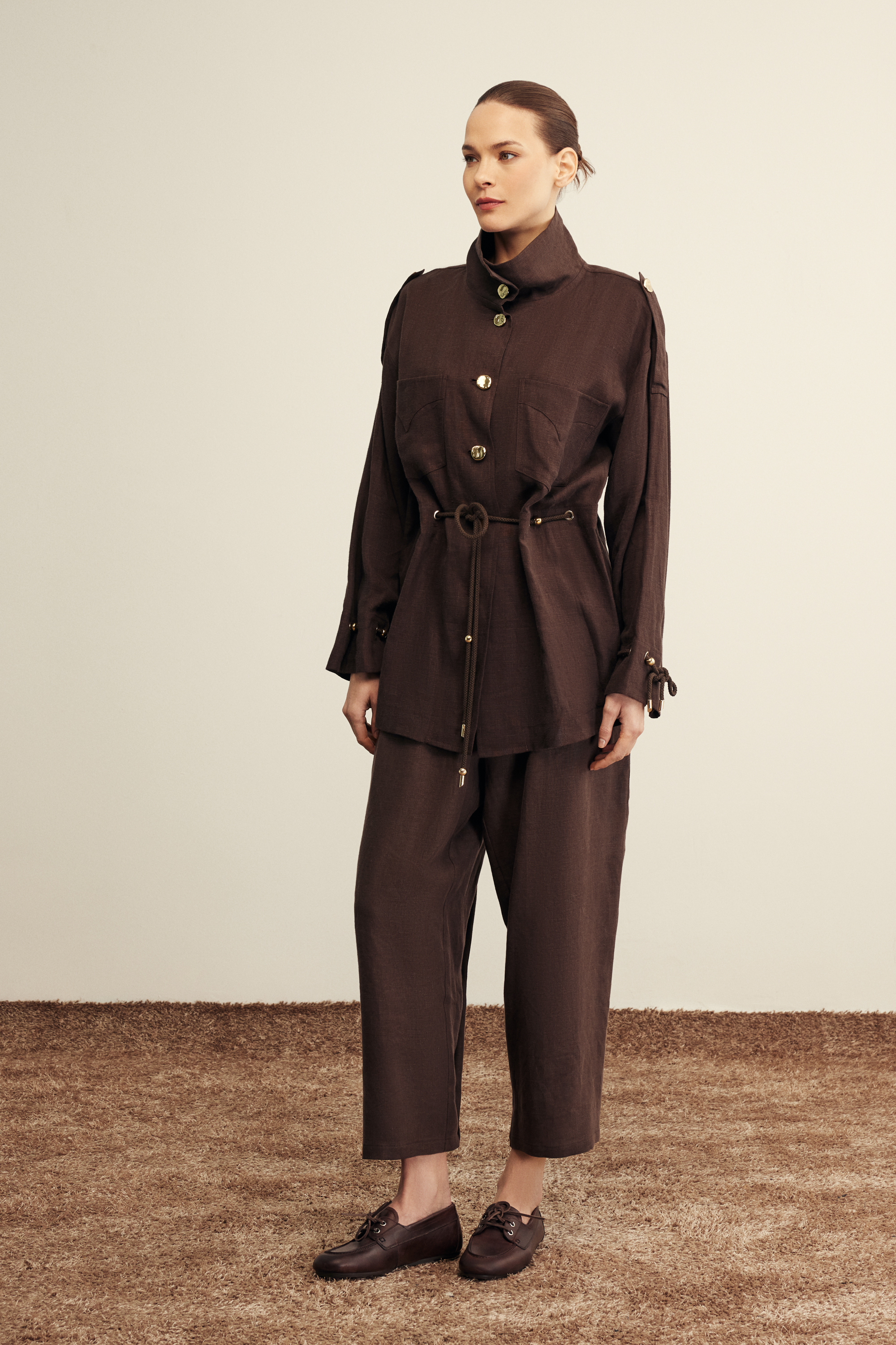 Venöve markasının doğal ve zamansız tasarım anlayışıyla hazırlanan bu ceket, %100 keten kumaşı ile tesettür giyimde hem konfor hem şıklık sunar. Bel kısmındaki kemer detayı ile form kazanan tasarım, sade ve güçlü bir görünüm sağlar. Günlük kombinlerden özel davetlere kadar geniş kullanım imkanı sunar.