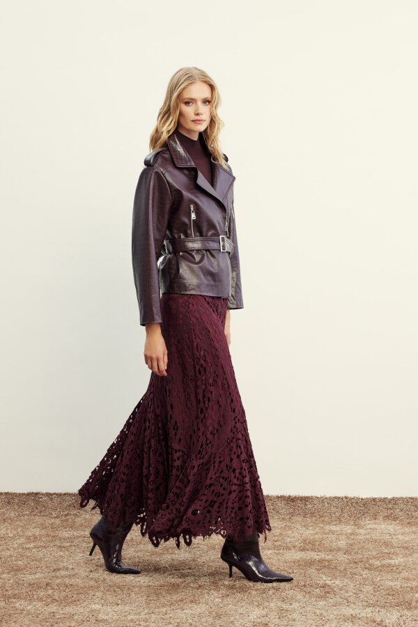 Miss Dalida Beli Lastikli Cupra Etek Plum