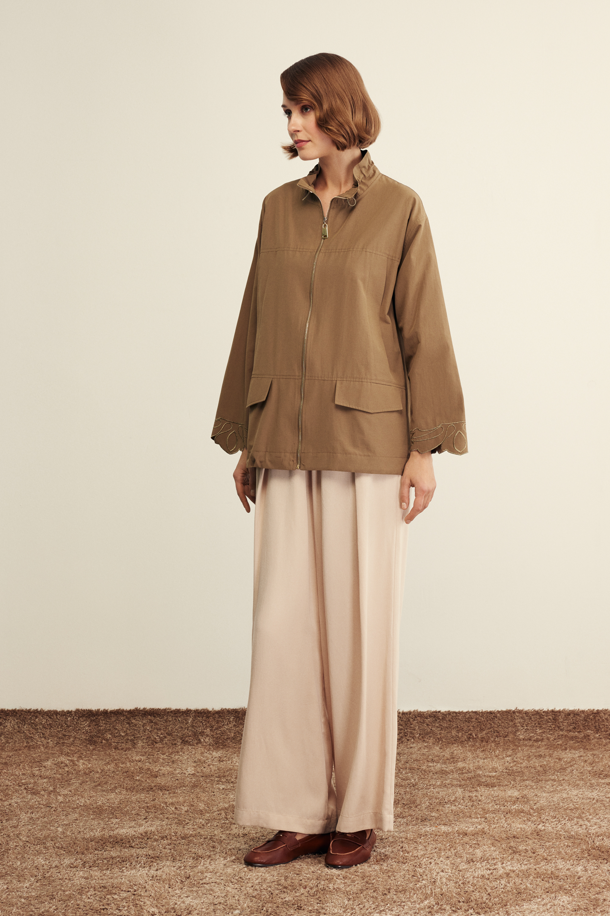 Miss Dalida Fermuarlı Cupro Detaylı Triko Ceket Amber