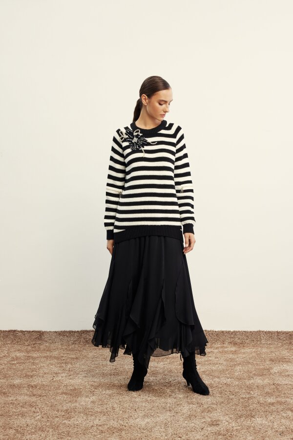 Cloche Taşlı Yakalı Triko Kazak SİYAH