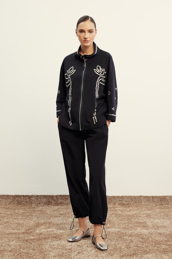 Qupra İnci Aksesuarlı Roma Bomber Ceket SİYAH
