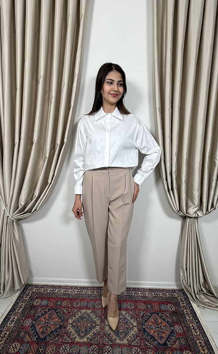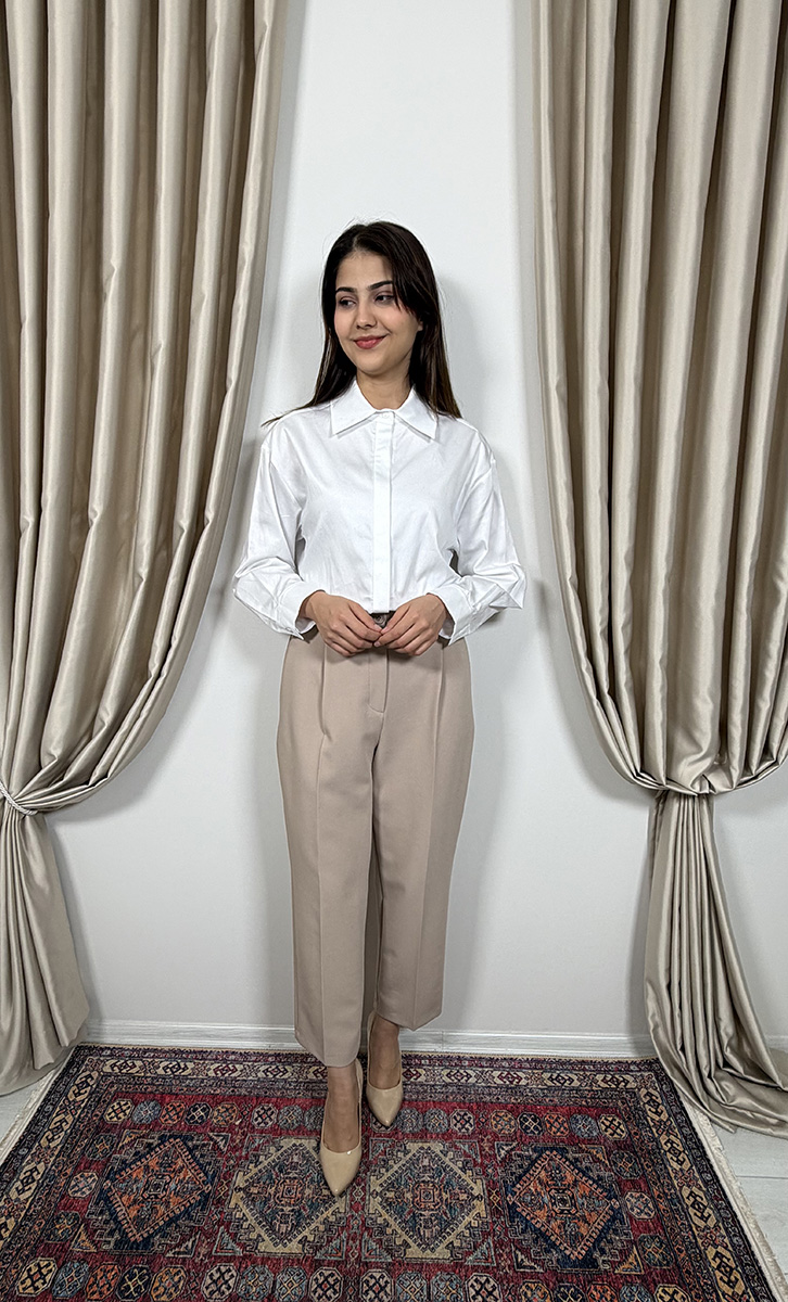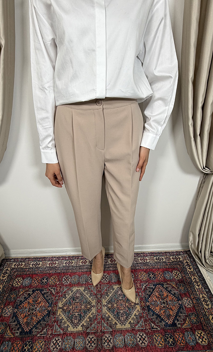 Yeşim Özcan Yanı Sim Detaylı Pantolon Naturel