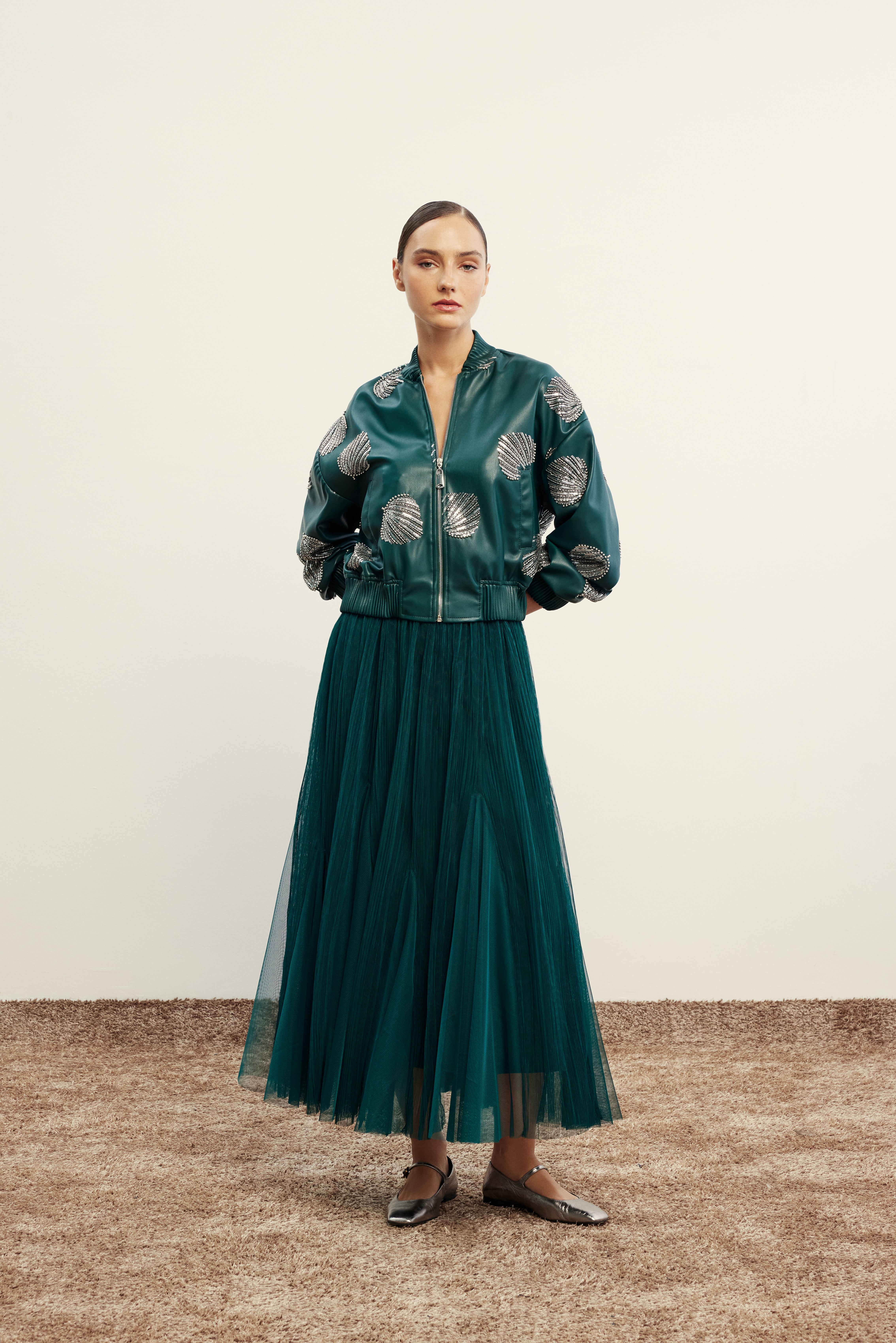 Qupra İnci Aksesuarlı Roma Bomber Ceket SİYAH