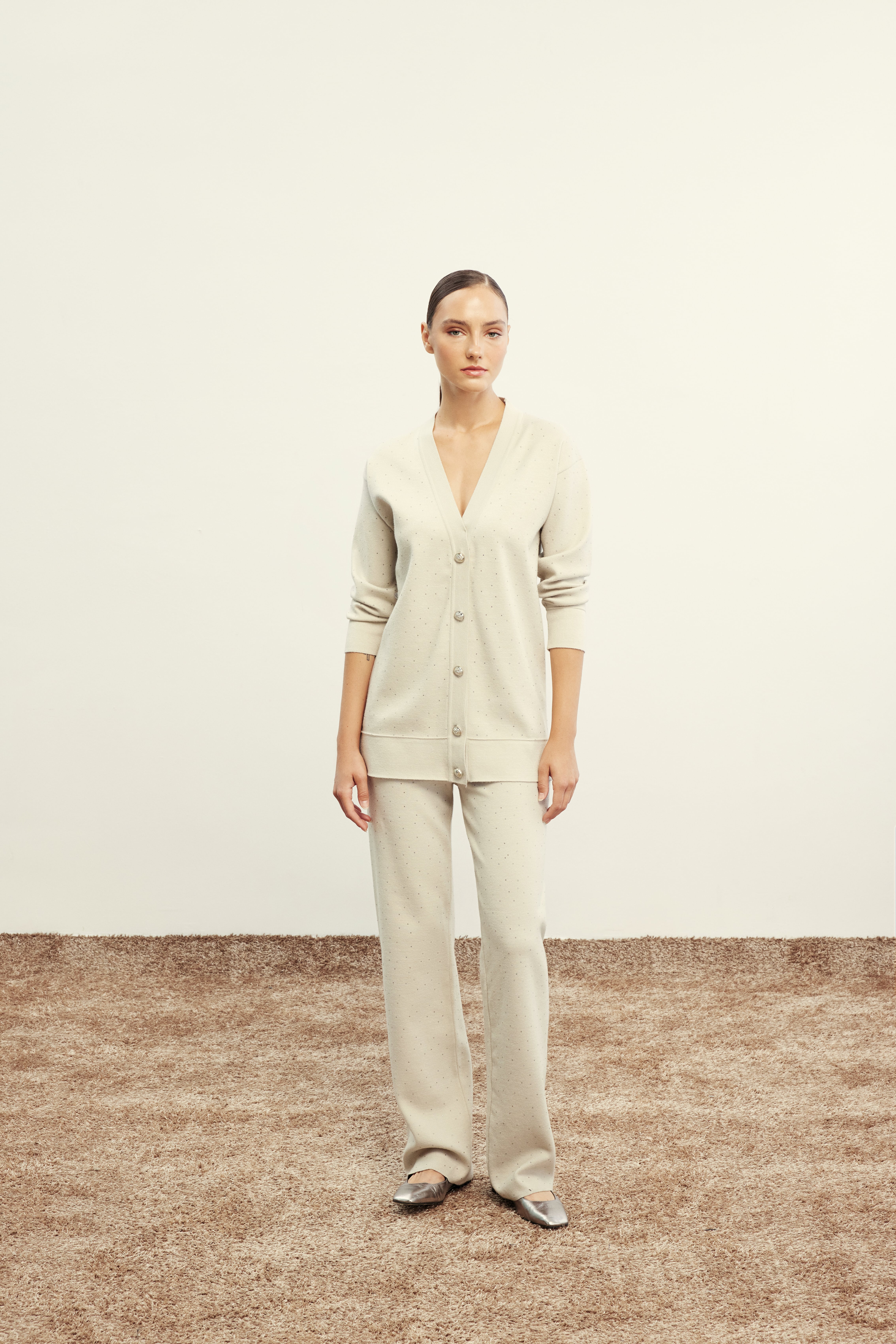 Yeşim Özcan Kalın Triko Pantolon EKRU