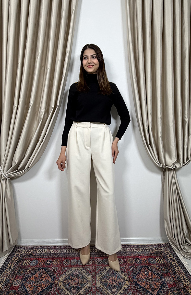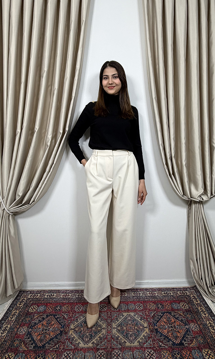 Yeşim Özcan Düğme Detaylı Pantolon SİYAH