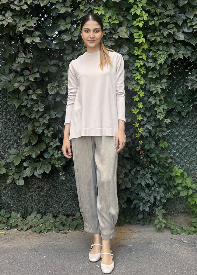 Yeşim Özcan Kalın Triko Pantolon EKRU