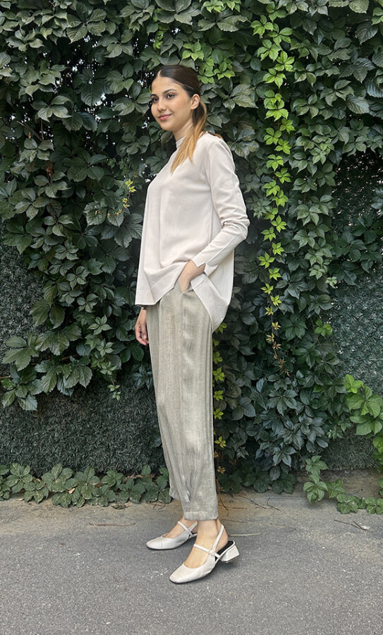 Yeşim Özcan Yanı Sim Detaylı Pantolon Naturel