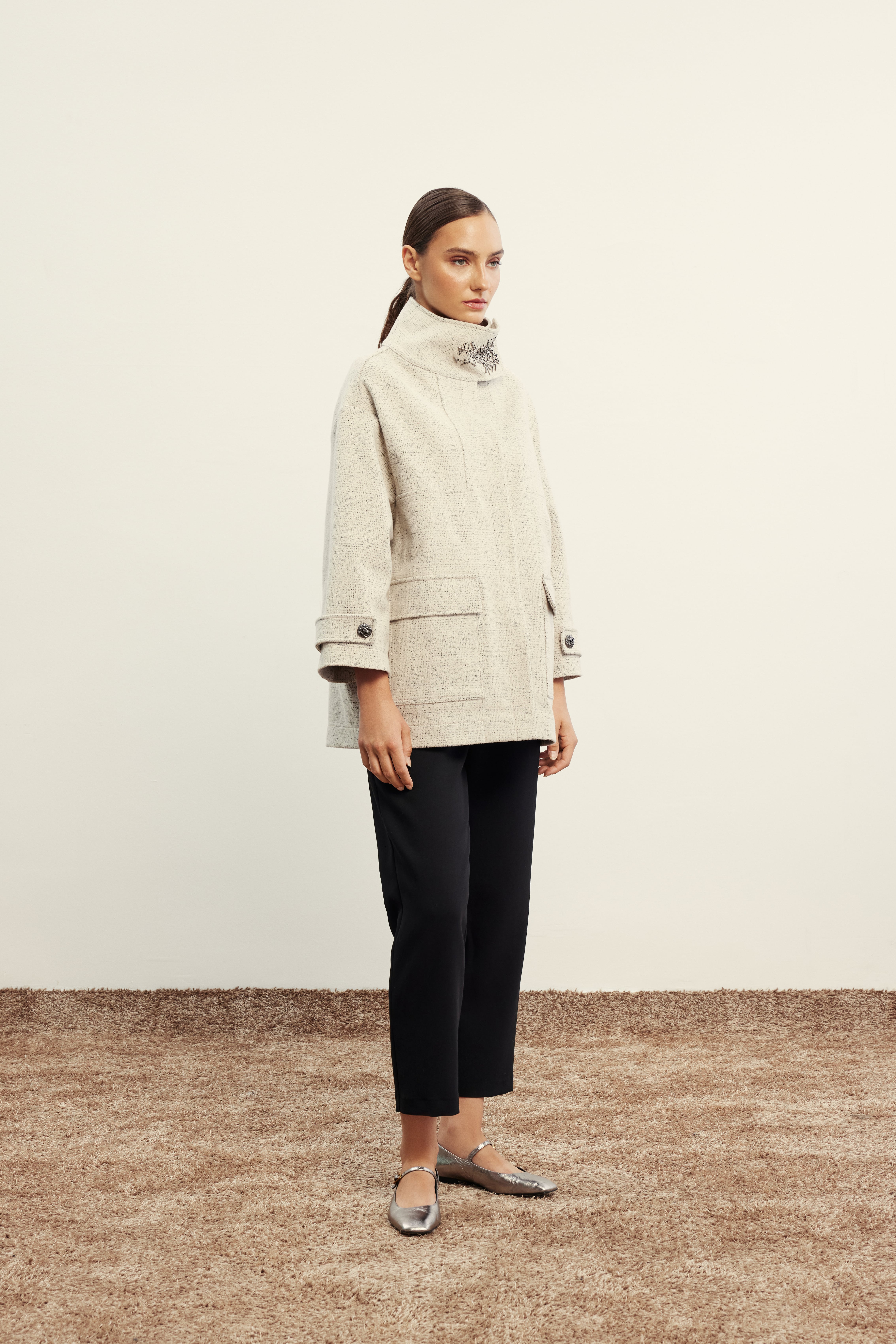 Qupra İnci Aksesuarlı Roma Bomber Ceket EKRU