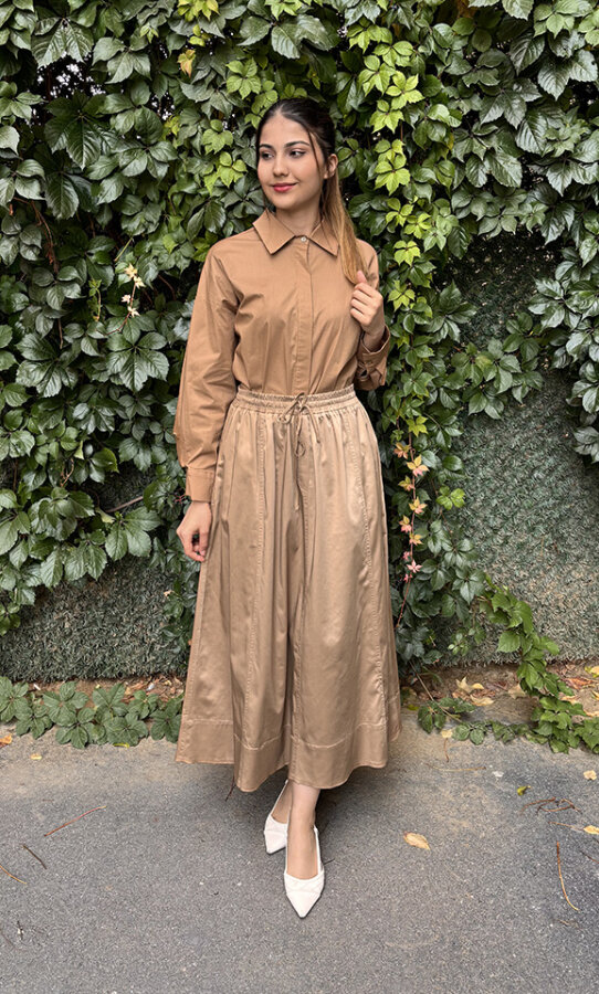 Miss Dalida Beli Lastikli Cupra Etek Plum