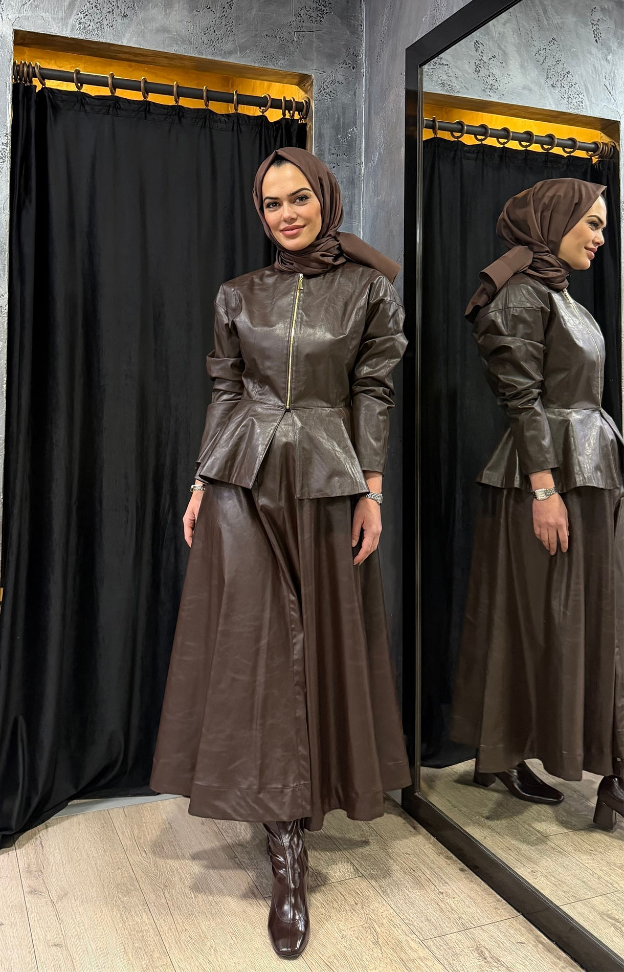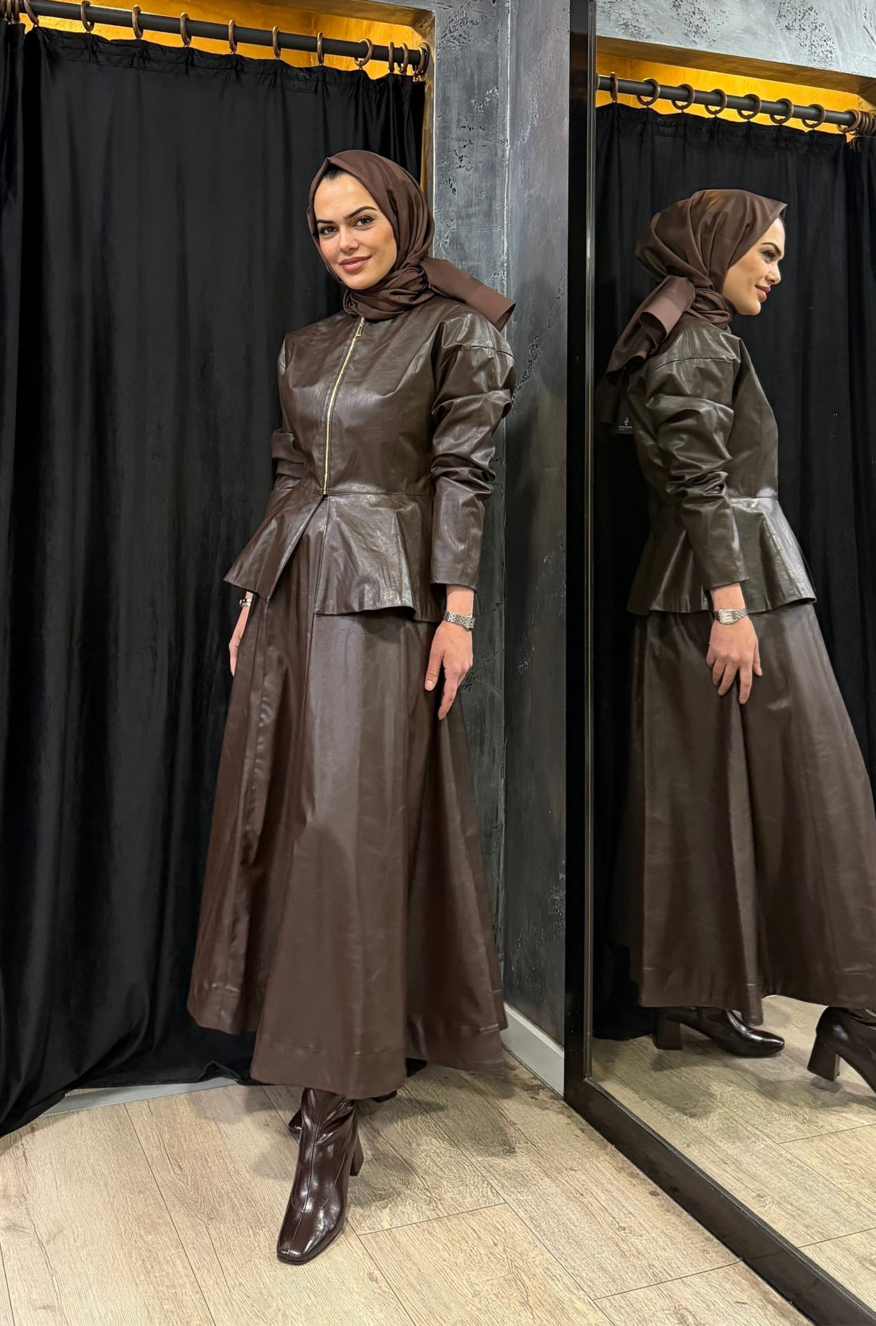 Vuu Deri Verev Etek KAHVE