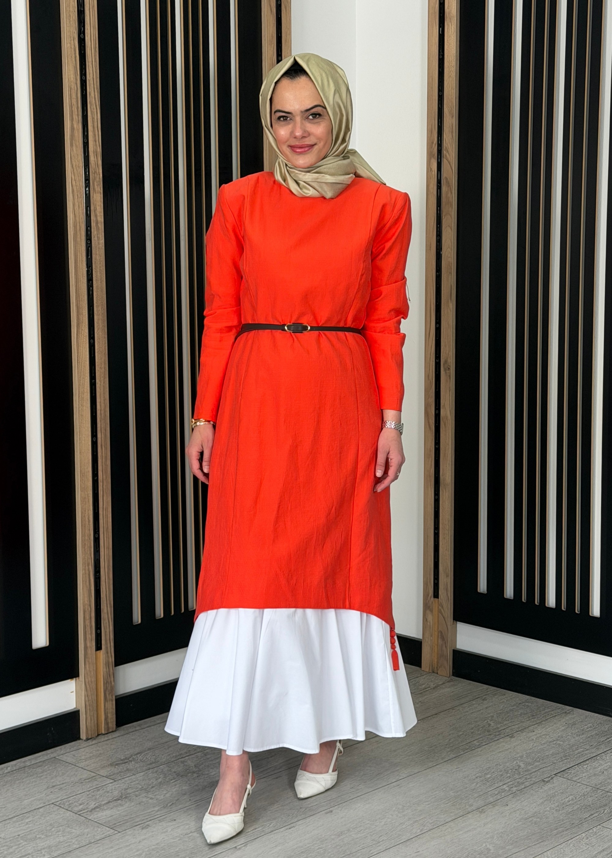 MissWhence Kuşaklı İpek Elbise ORANJ