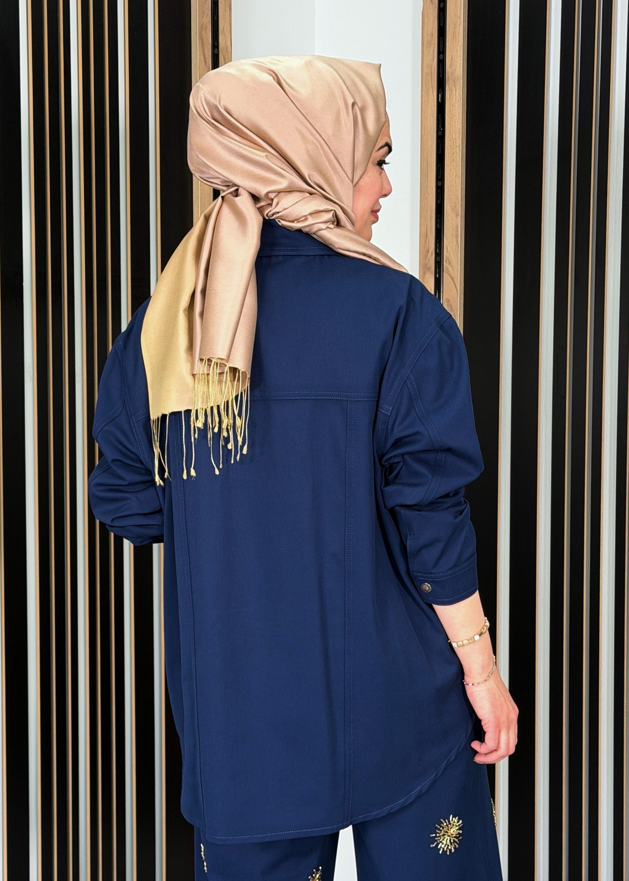 Miss Dalida Gömlek Yaka Denim Detaylı Uzun Ceket İNDİGO