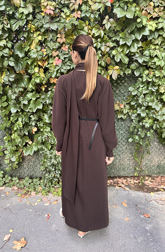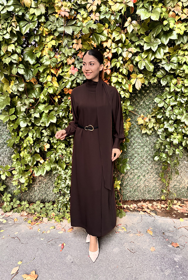Vuu Önü Nervürlü Yarasa Kol Elbise Acı Kahve