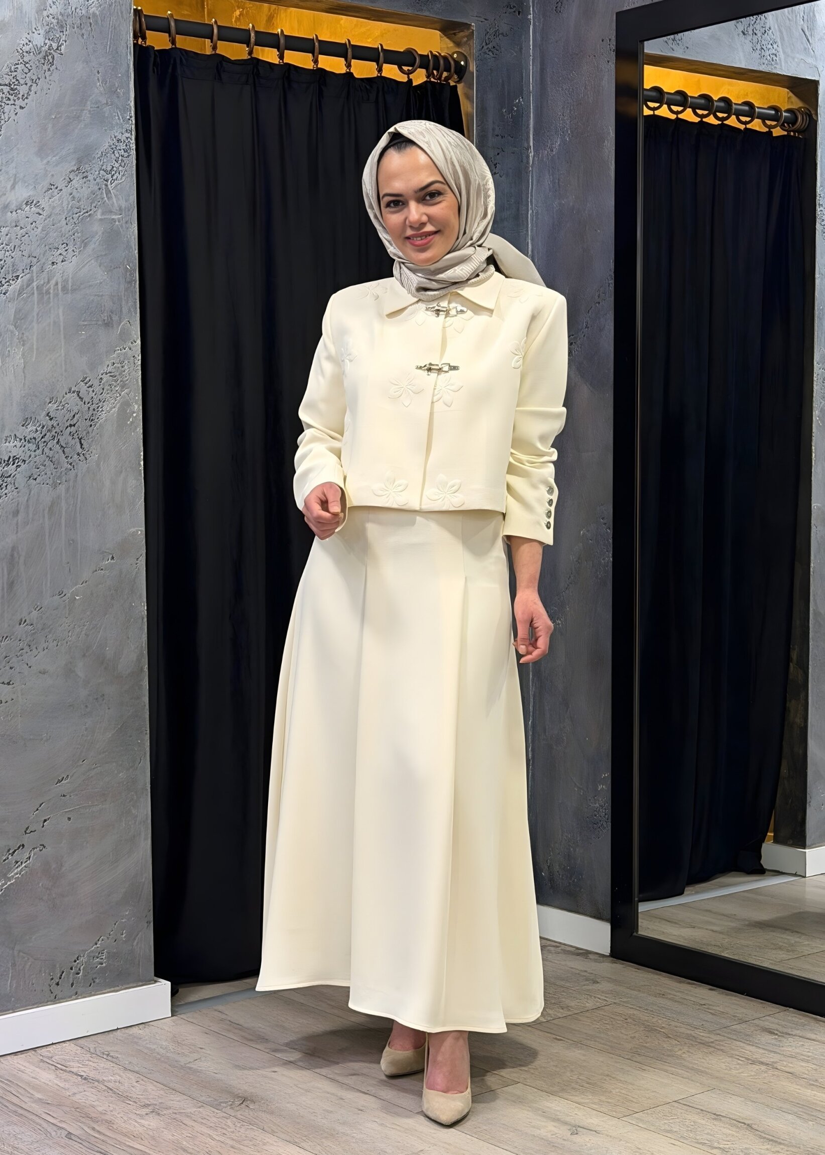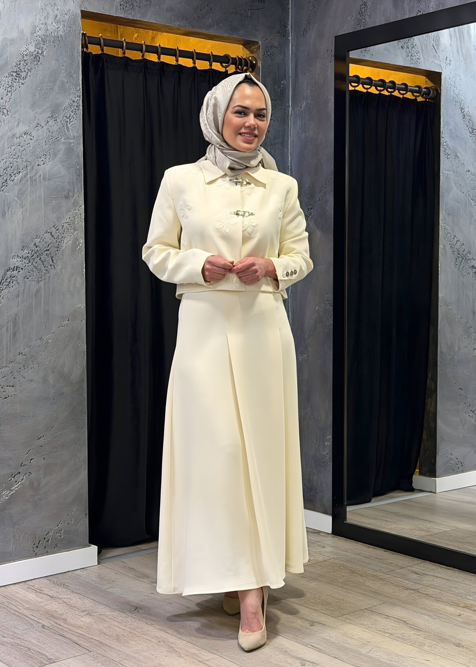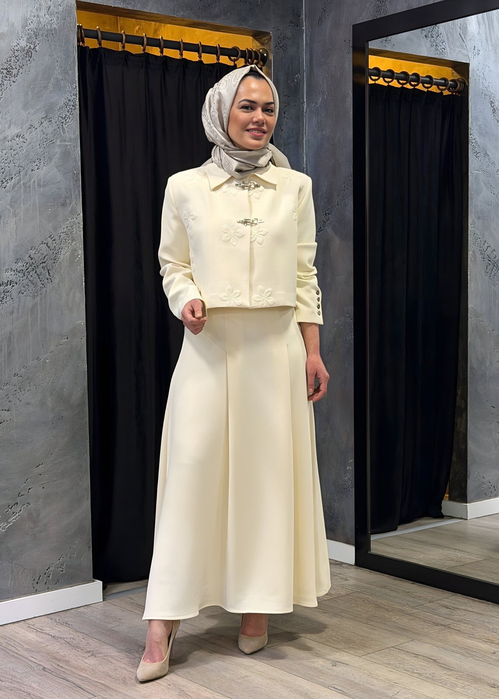 Vuu Önü Pileli Etek EKRU