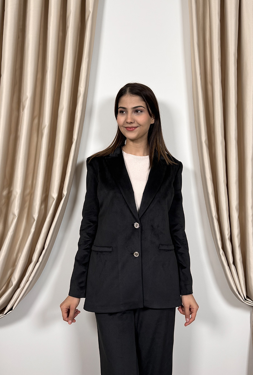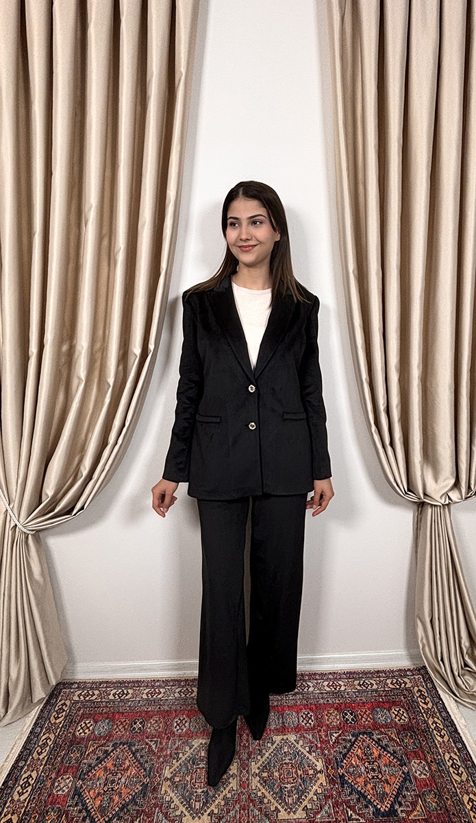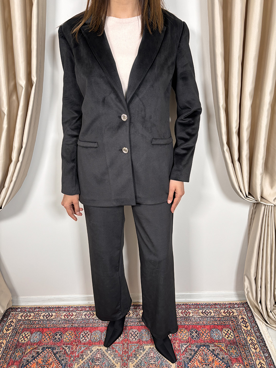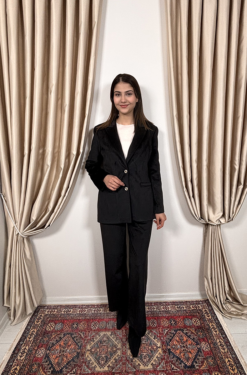StudioNish Yakası Fermuarlı Pantolonlu Takım SİYAH