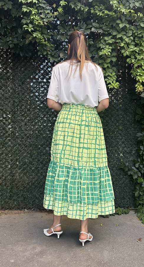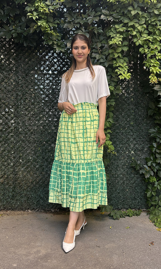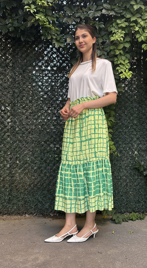 Yeşim Özcan Lime Kare Desenli Etek LİME