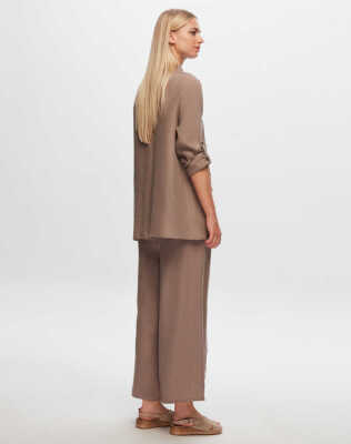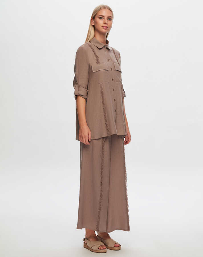 Miss Dalida Püskül Detaylı Bol Paça Keten Pantolon MİNK