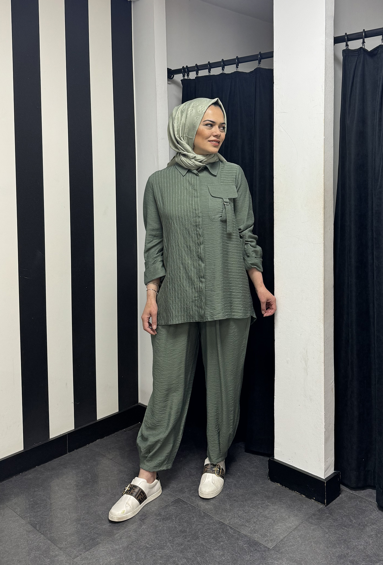 Nuss Cep Detaylı Tunik ve Fırfır Detaylı Etek Takım HAKİ