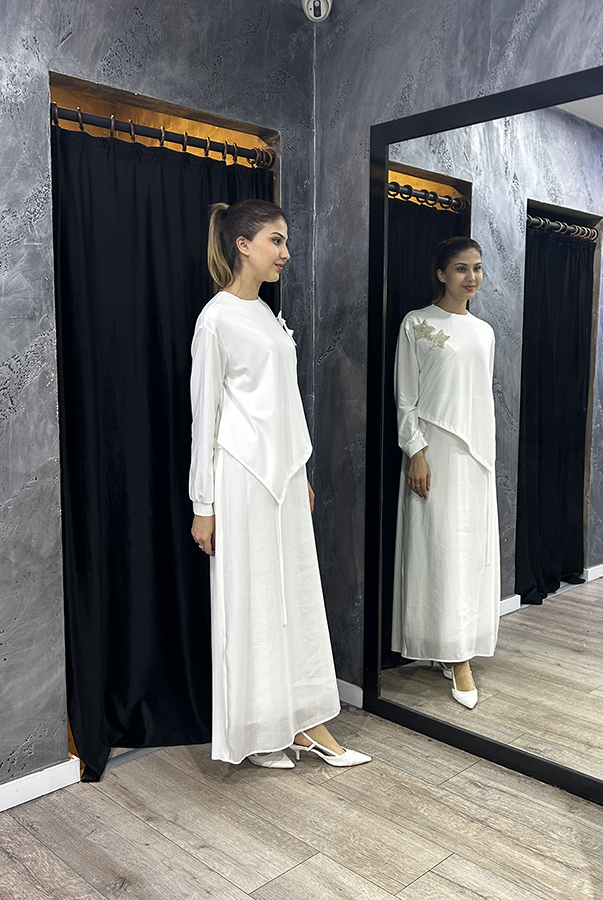 Qupra Yıldız Broşlu Elbise BEYAZ
