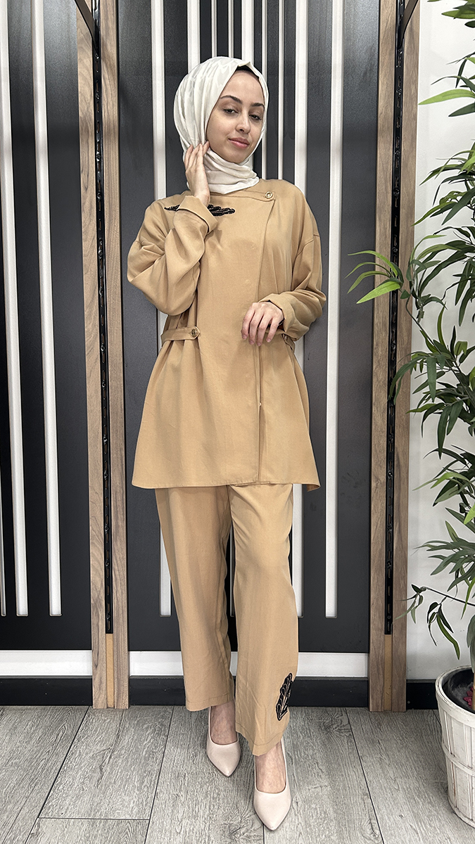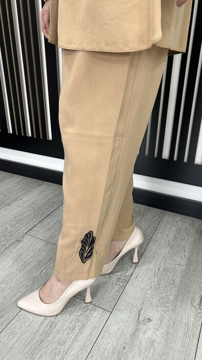 Yeşim Özcan Yanı Sim Detaylı Pantolon Naturel